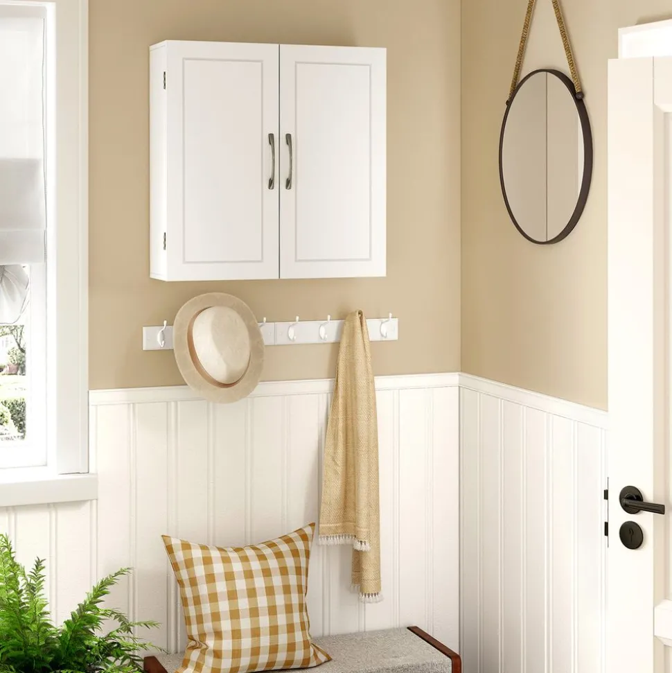 RÉSISTANT DANS LE TEMPS : Fabriqué en panneau MDF de classe E1 de haute qualité, ce placard résistant possède une finition laquée et une surface lisse facile à nettoyer pour une salle de bain resplendissante sur le long terme
