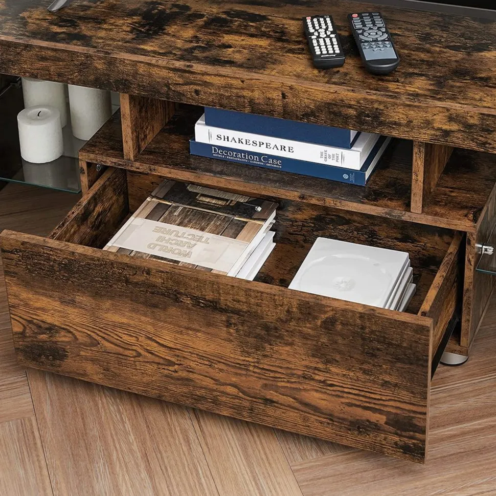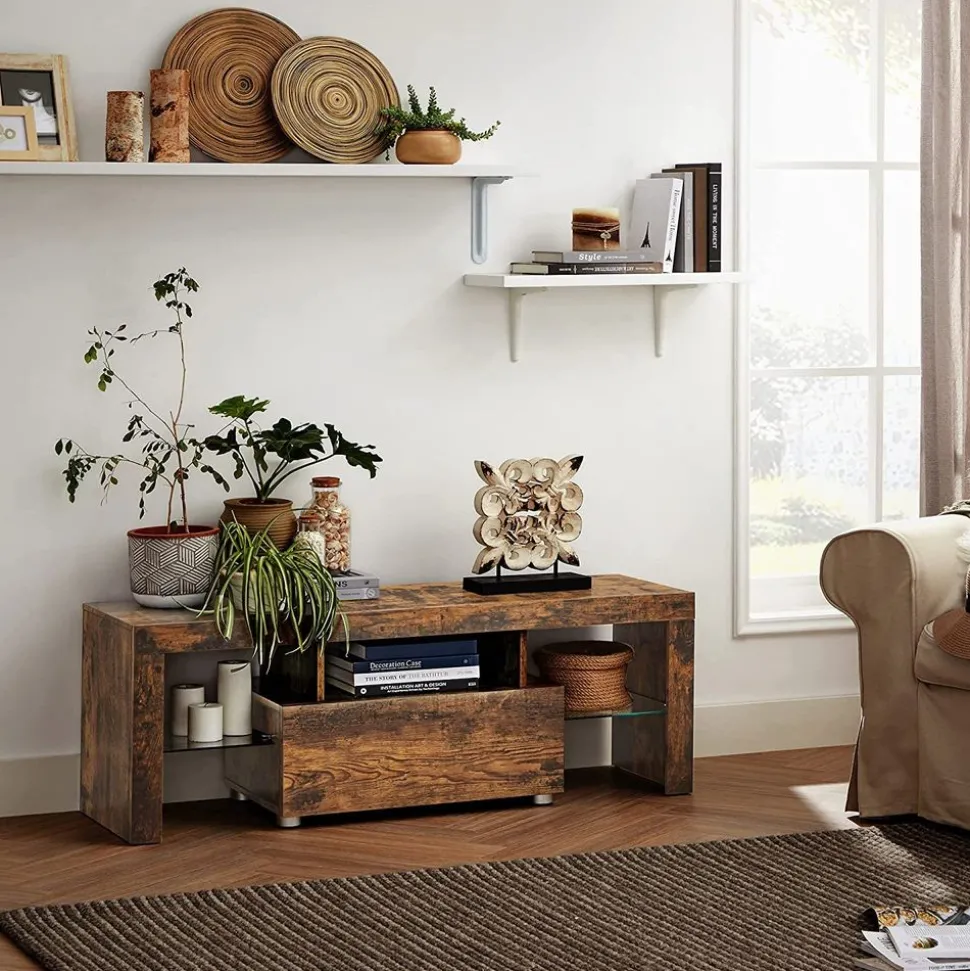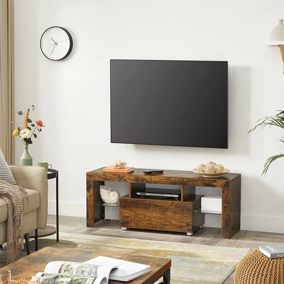 Série après série : Les personnages de votre série télévisée préférée peuvent changer mais ce meuble TV ne vous brisera pas le cœur. Fabriqué en panneau d’aggloméré et en verre trempé robustes, il vous accompagnera pour les saisons à venir