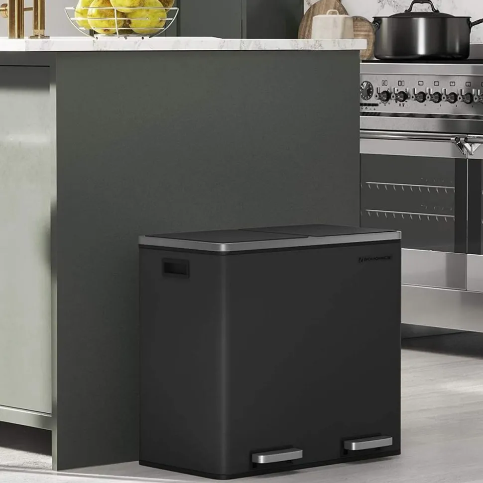 MIEUX TRIER : Cette poubelle à pédale comporte 2 seaux pour faciliter le tri de vos déchets. Avec ces 2 pédales, même plus besoin de toucher la poubelle avec les mains !