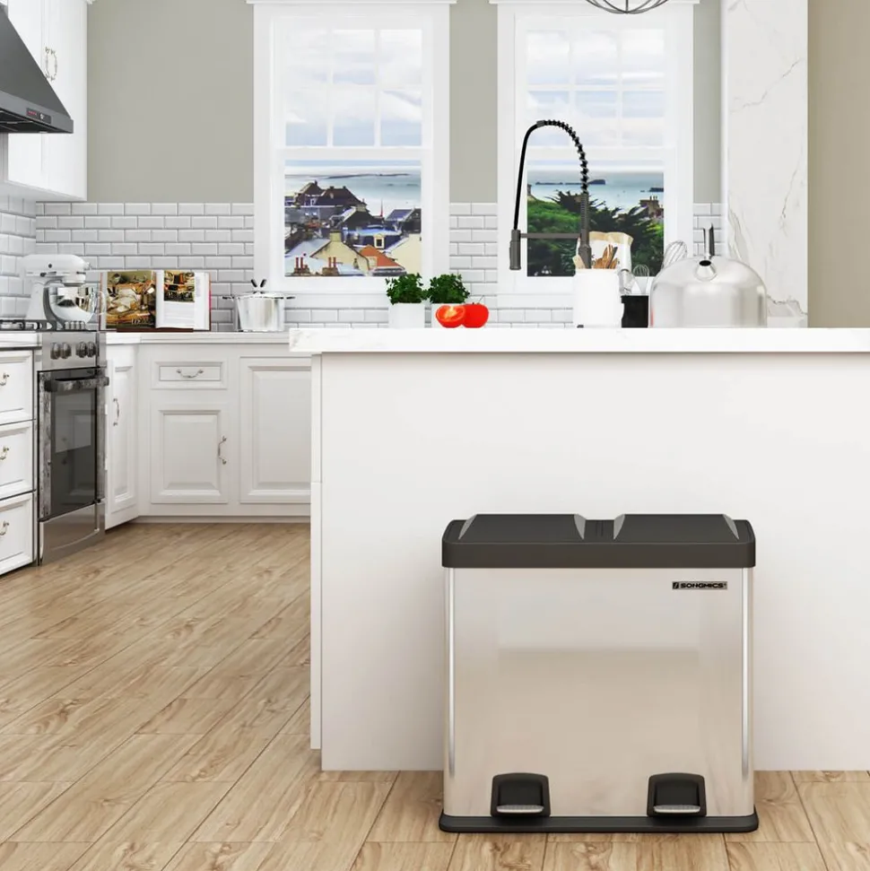 UN INCONTOURNABLE POUR VOTRE CUISINE : Fort en design esthétique et fonctionnalité, cette poubelle à pédale avec 2 seaux facilite le tri des déchets. L’ouverture à pédale est super pratique quand on a les mains pleines