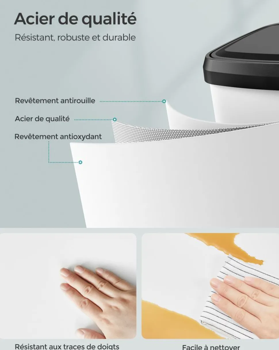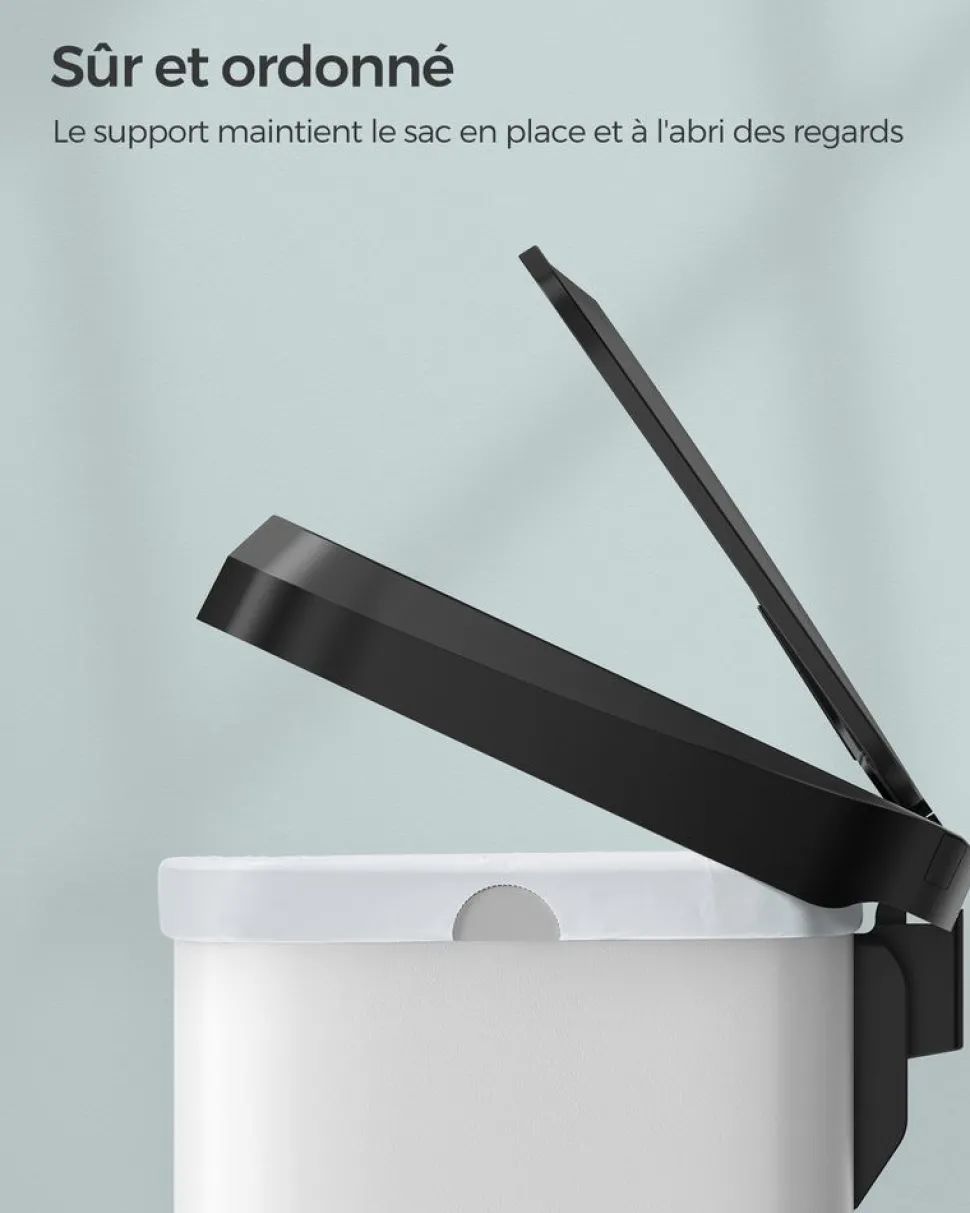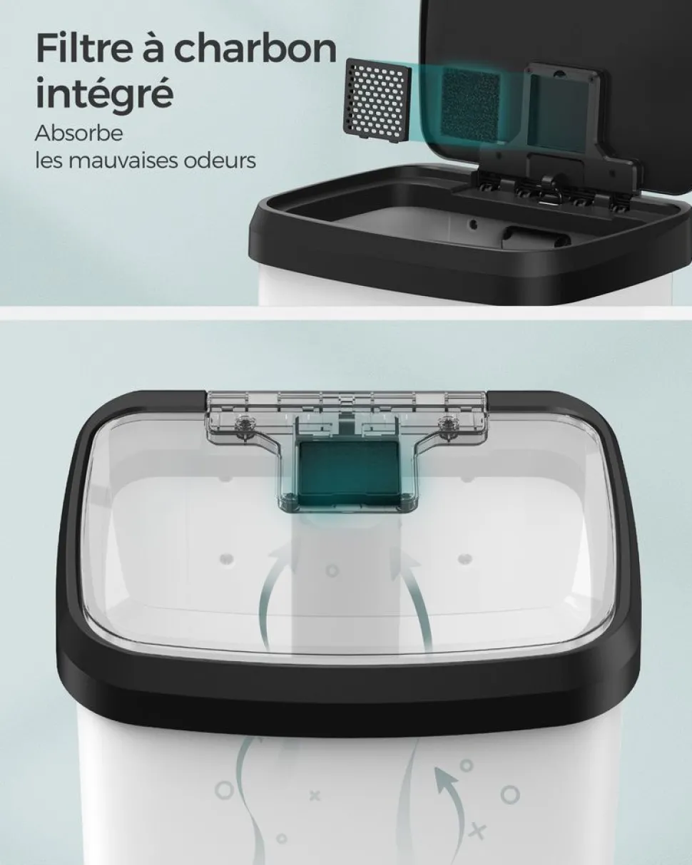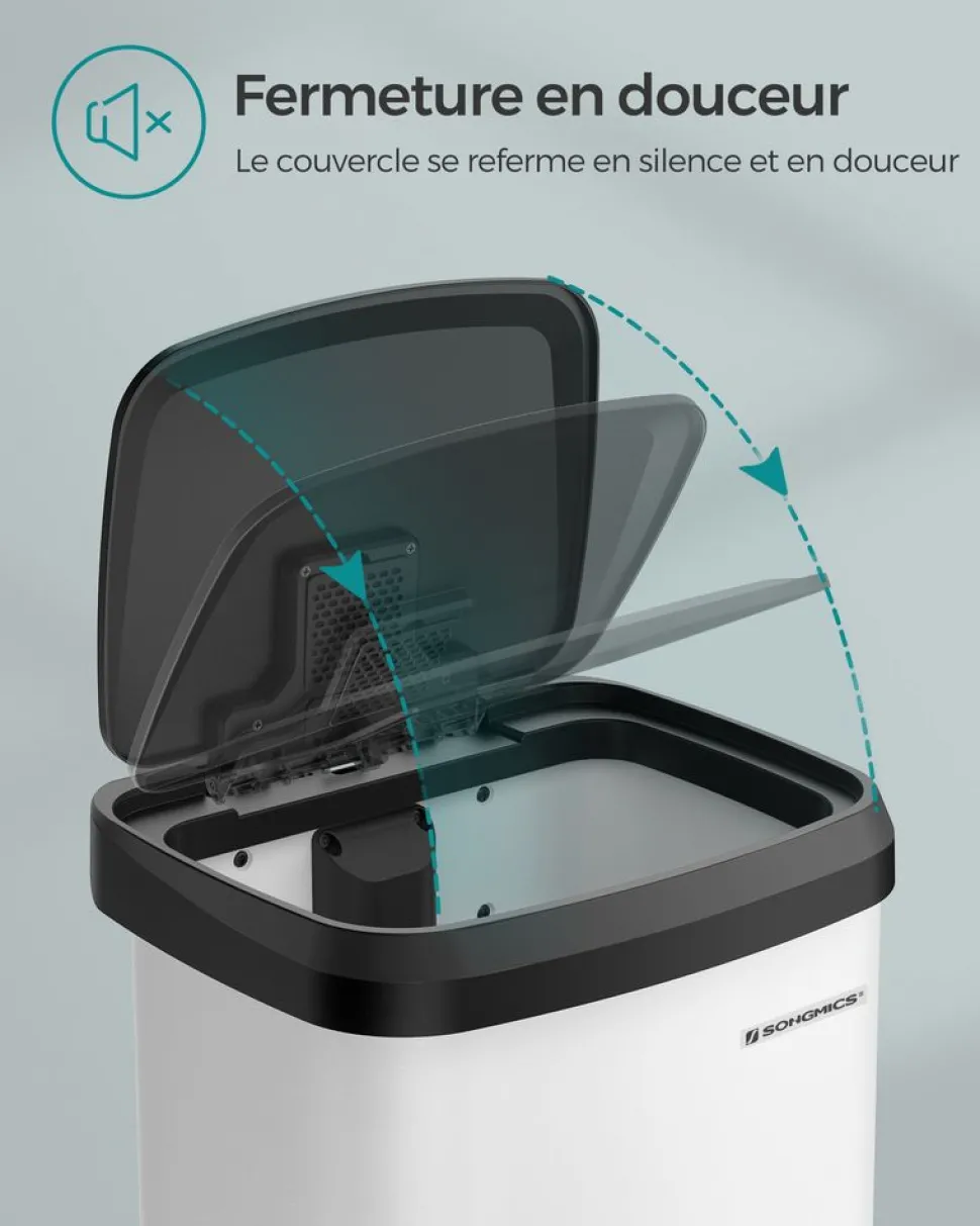 Sale SONGMICS Poubelle de cuisine 68L en métal blanc noir