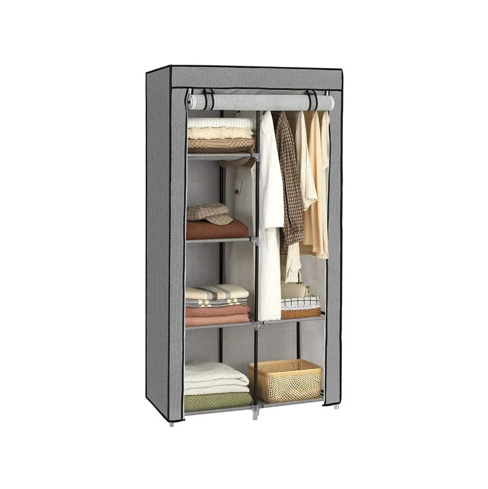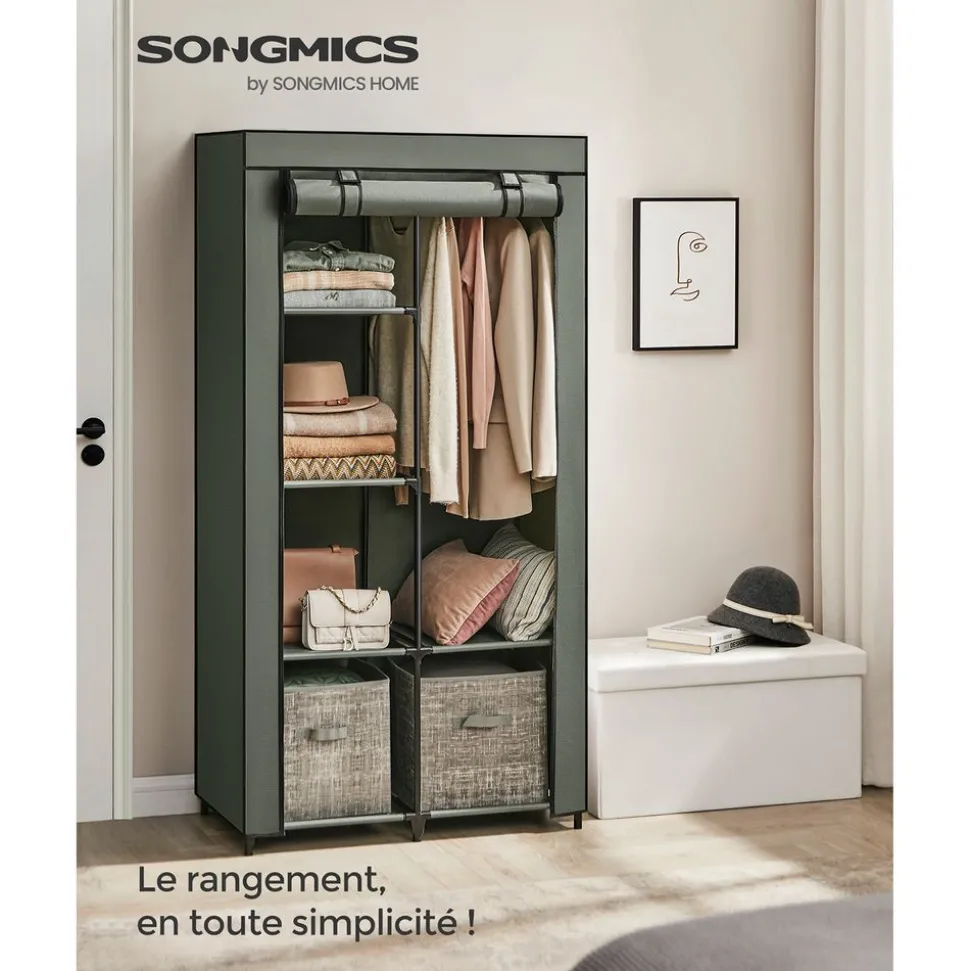 Grâce à cette garde-robe en tissu, vous n’avez plus à chercher la tenue adéquate dans des piles de vêtements. Voilà comment économiser beaucoup de temps et d’efforts le matin. Cette armoire est équipée de 2 tringles à vêtements où vous pouvez accrocher vos vêtements. Avec elles, ils restent ordonnés et à portée de main.Caractéristiques :