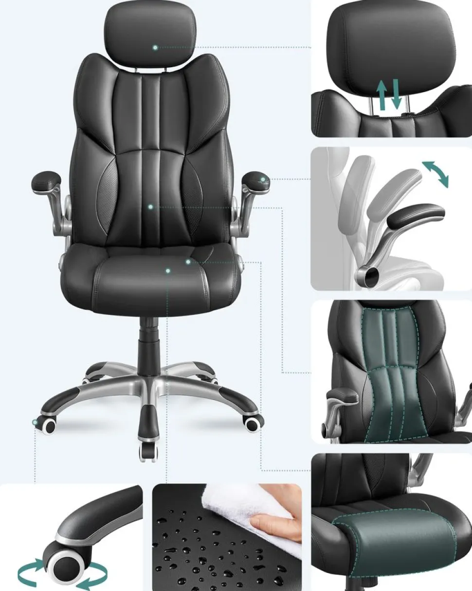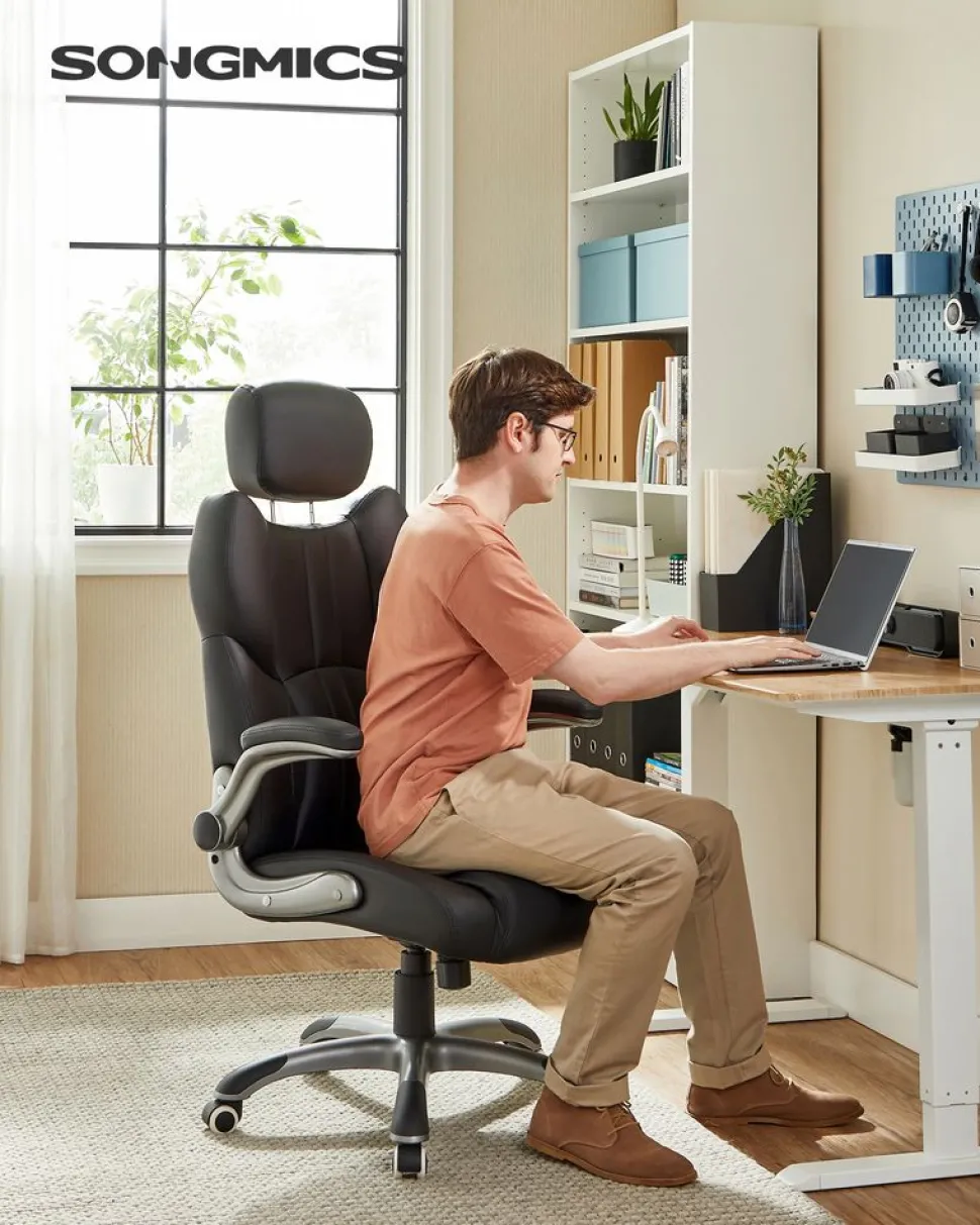 Le dossier professionnel généreusement rembourré soutient bien votre cou et votre tête pour prévenir les douleurs et les crampes.