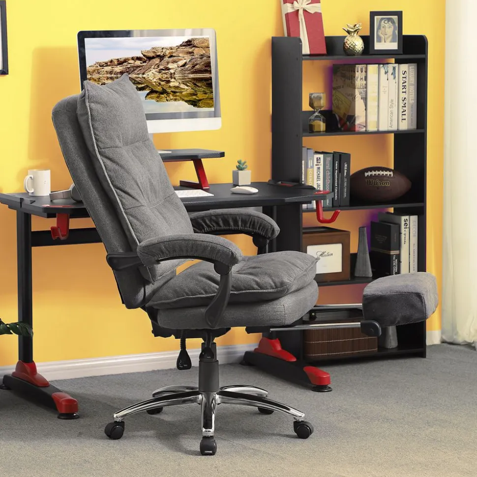 Cette chaise de bureau SONGMICS vous apporte un confort extrême lorsque vous travaillez au bureau. Le double rembourrage épais du dossier et le coussin d’assise vous aident à rester de bonne humeur au travail. Les accoudoirs souples sont conçus pour soulager la fatigue de vos avant-bras, l’épais appui-tête rembourré aide à réduire la pression du cou et offre un excellent confort. Le fauteuil rotatif laisse à votre corps un certaine liberté de mouvement. Le fauteuil est réglable en hauteur pour s’adapter à tous les types de table. Installez-vous sur ce fauteuil ergonomique et concentrez-vous sur votre travail confortablement. N’hésitez plus, profitez-en dès maintenant!