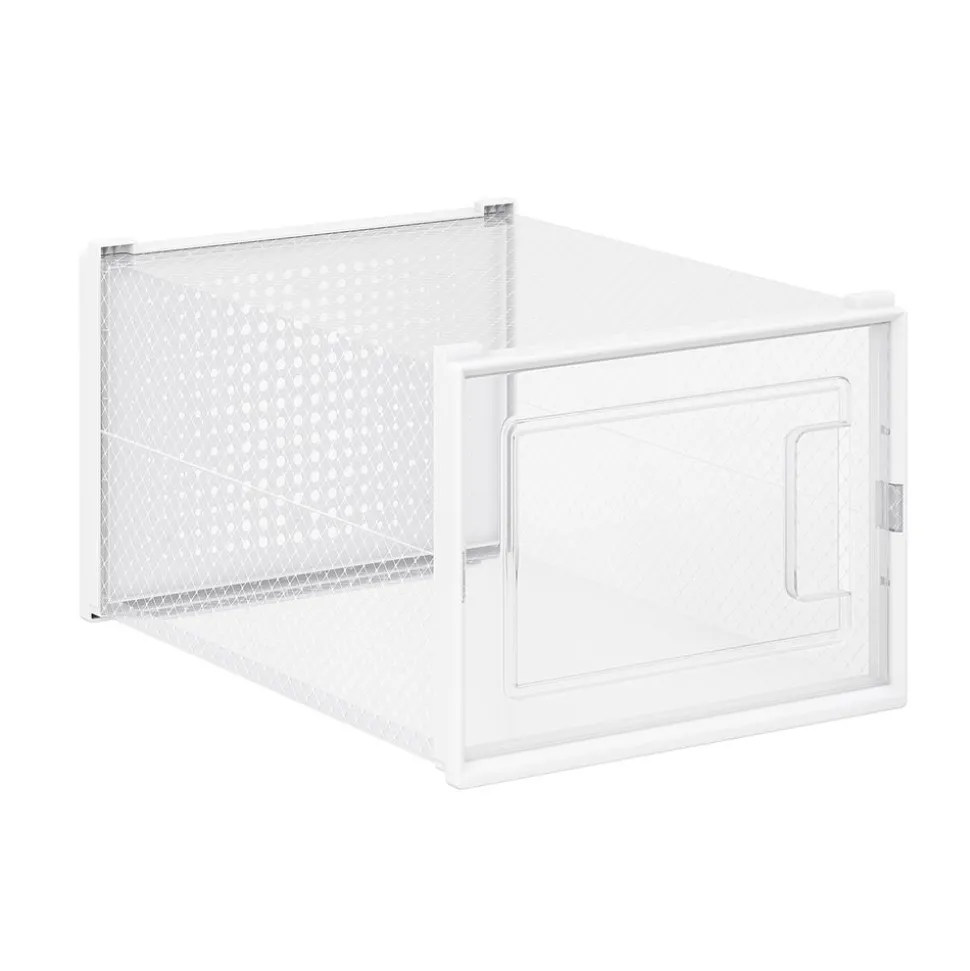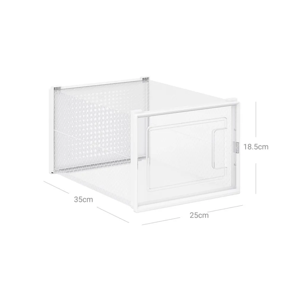Le rangement est un art de vivre: Chaque boîte peut contenir des chaussures jusqu’à la pointure 44, tout en les protégeant de la poussière. Trouvez la paire que vous voulez porter d’un seul coup d’œil et ouvrez la porte de devant pour bien débuter la journée. Ce qui est encore mieux, c’est que ces boîtes sont empilables et extensibles avec des connecteurs en plastique pour gagner de la place dans votre entrée, dans votre placard ou sur une étagère.