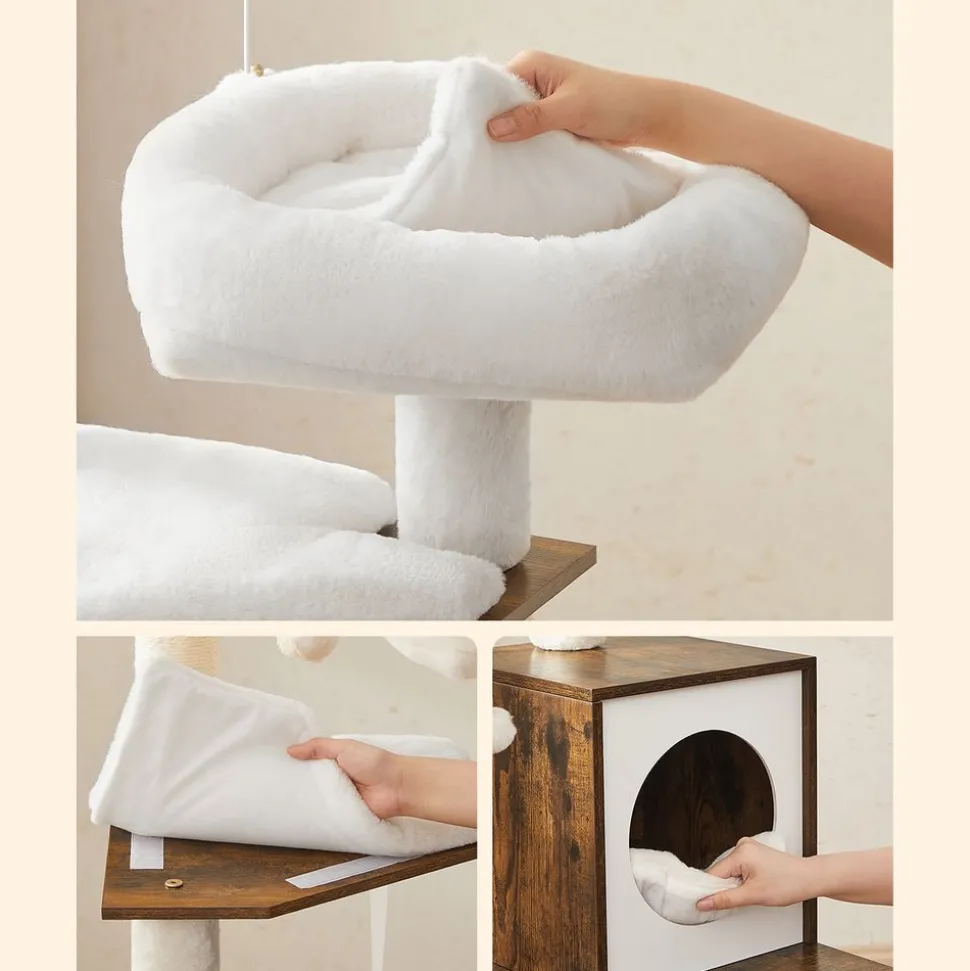 Plus d’intimité, moins de désordre : Avec cet arbre à chat, votre chat a un endroit privé où il se sent en sécurité pour faire ses besoins. Et vous ? Vous pouvez cacher le désordre et réduire les mauvaises odeurs, une solution gagnant-gagnant !