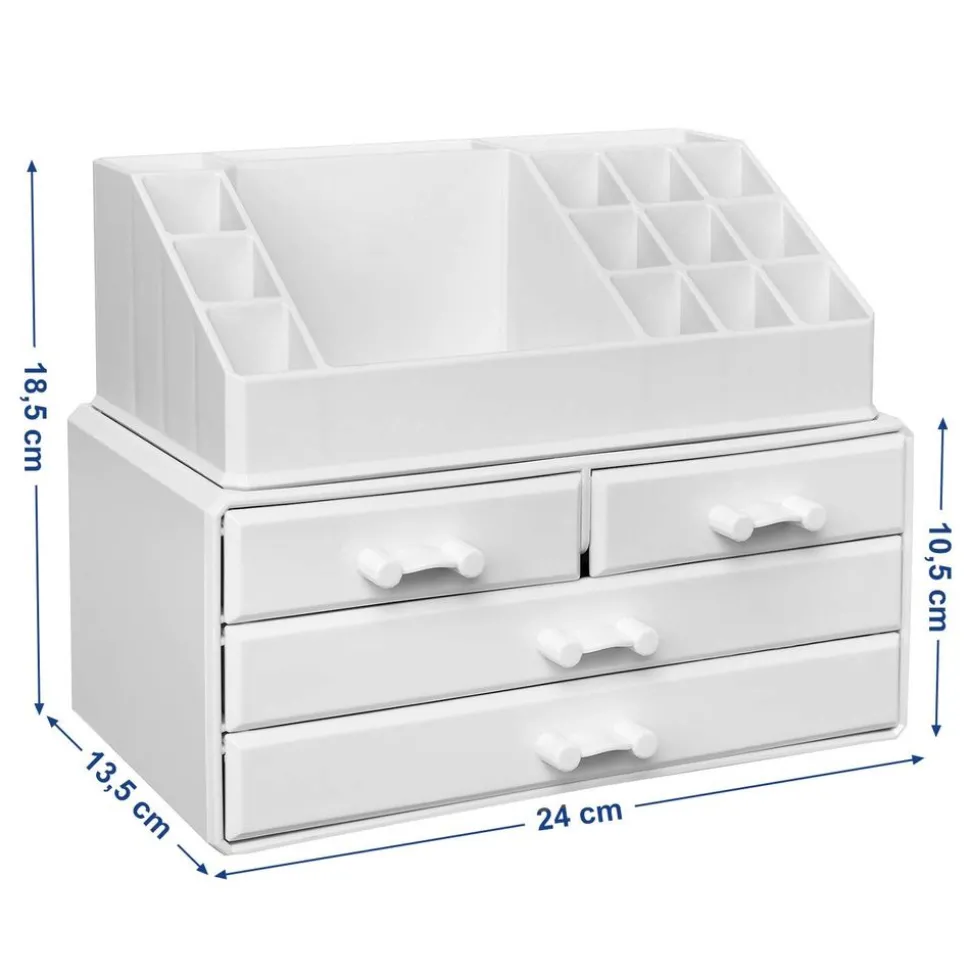 Grande capacité – 4 tiroirs avec les dimensions différentes pour ranger vos bijoux, le poudre, lingettes démaquillantes, etc. Un tissu de fibre amovible est fourni pour chaque tiroir afin de protéger vos bijoux contre les rayures et garder la proprété de votre tiroir. L’étage supérieur a été divisé en 16 compartiments des profondeurs différentes pour vos brosses, rouge à lèvres, MASCARA, pinceaux, crayons, etc.