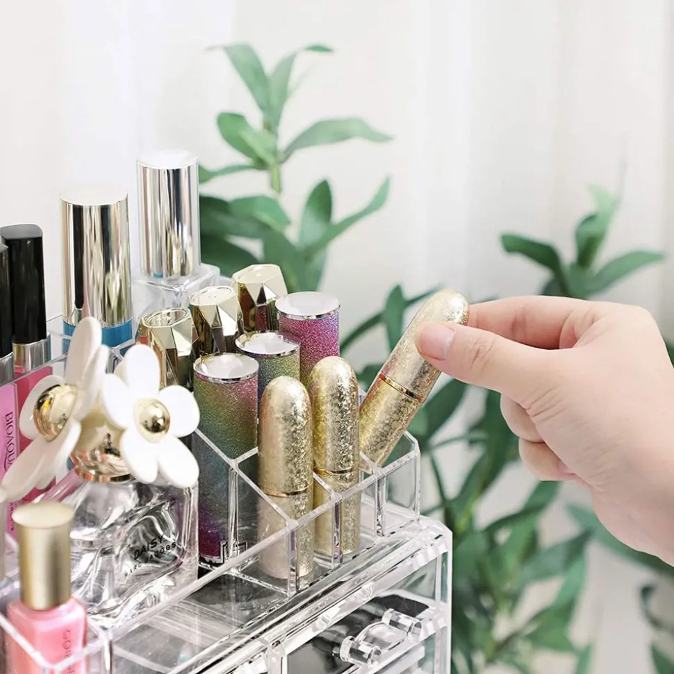 Etes-vous en train de chercher un produit de rangement avec la taille idéale pour ranger tous vos assessoires cosmétiques? Cet organiseur de maquillage 2 en 1 sera une solution parfaite pour stocker vos poudres, bijoux,pinceaux, rouges à lèvres et fonds de teint, etc. En plus, le fait que ce soit transparent permet de localiser directement ce qu’on cherche. Ça prend pas trop de place sans faire » jouet pour enfants ». Tout simplement à poser sur votre coiffeuse, dans la salle de bains ou dans votre dressing-room. Se faire belle n’a jamais été aussi facile !