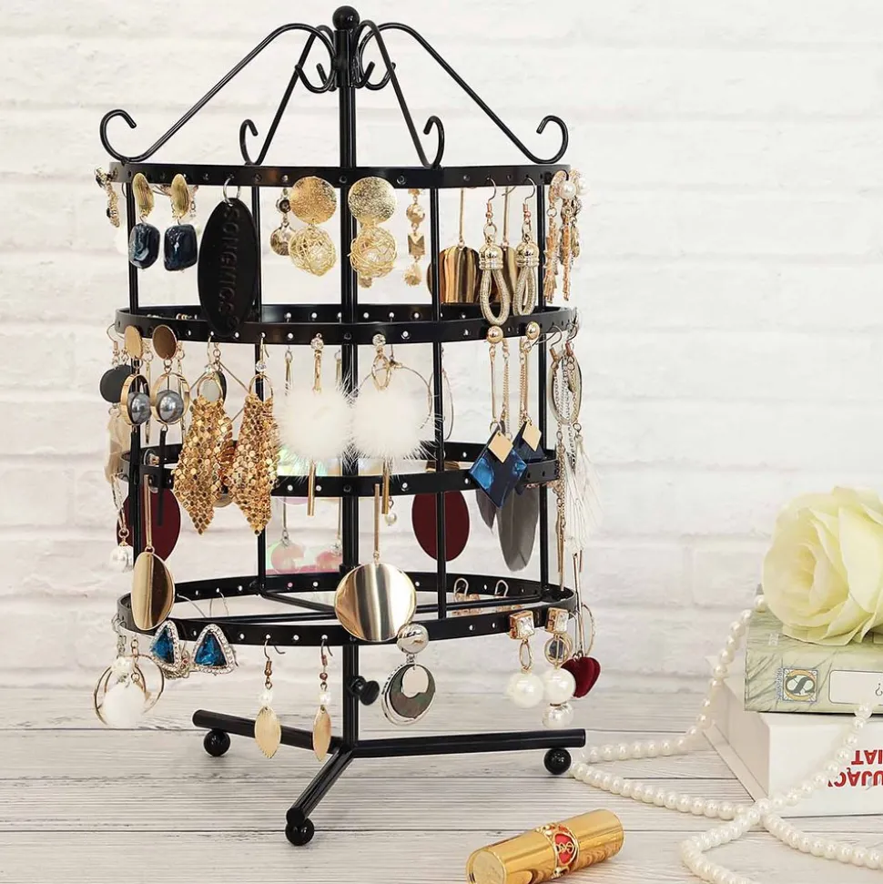 - Vous êtes amateur des bijoux? Vous avez tellement de clous d’oreille, boucles d’oreille, bracelets et colliers que vous ne savez pas comment ranger? Voilà la présentoir de bijoux de Songmics qui vous apporte une bonne solution. Tenant sur le trépied, le présentoir est stable. Etant pivotant à 360°, il offre un accès facile de prendre ou ranger vos bijoux.