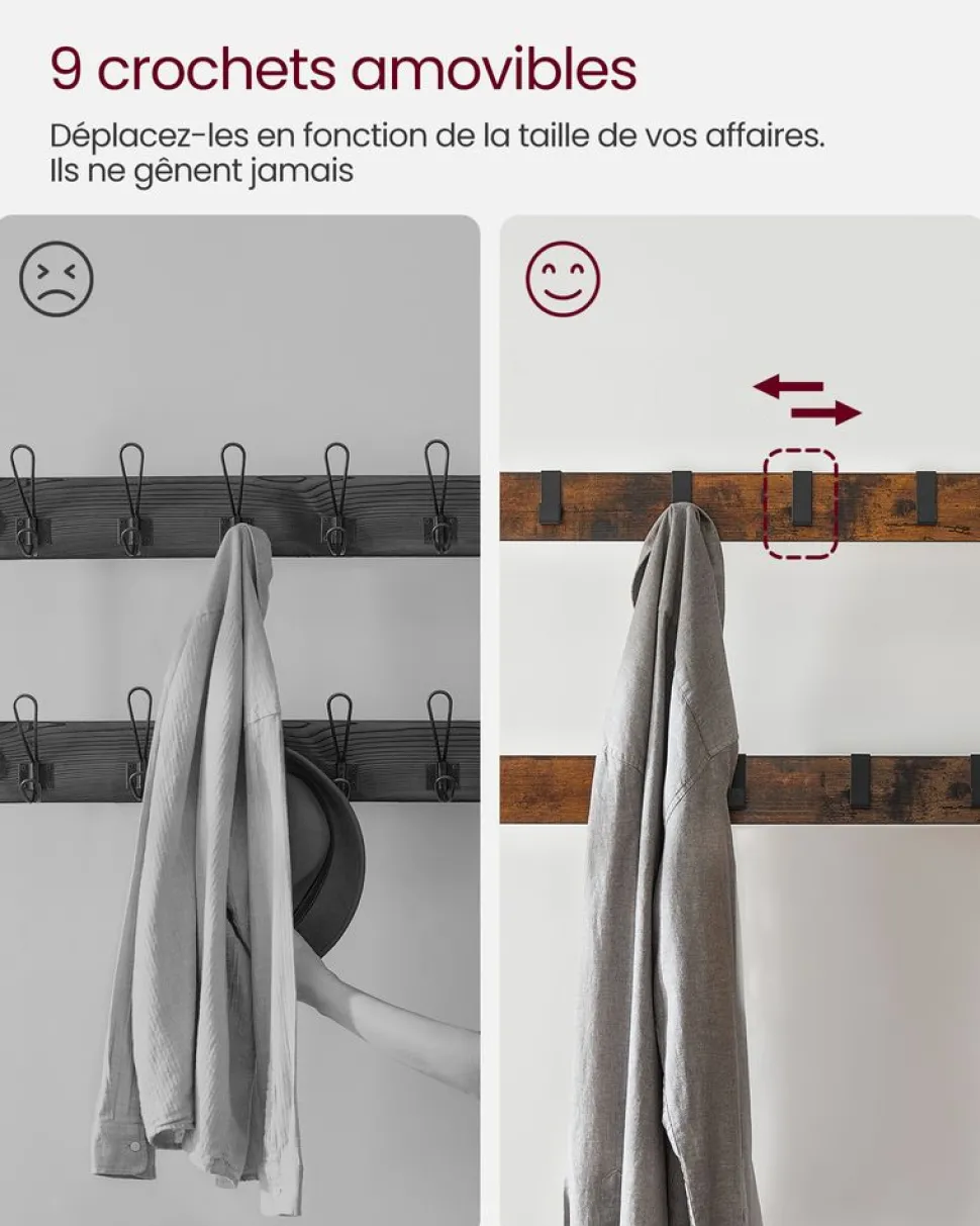 Faire d’une pierre deux coups : Certains meubles sont jolis mais pas pratiques. D’autres sont fonctionnels mais fades. Mais c’est pas le cas de ce portemanteau avec crochets. Ce meuble d’entrée est esthétique et fonctionnel
