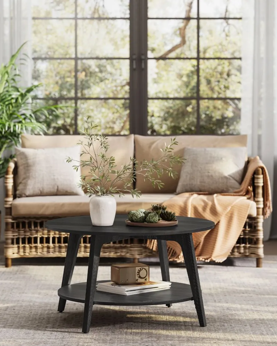 【RANGEMENT CACHÉ】 Bénéficiant d’un compartiment de rangement de 4,9 cm de profondeur, cette table ronde est conçue pour loger discrètement vos couverts et stylos. Gardez vos essentiels à portée de main mais hors de vue pour une maison bien rangée
