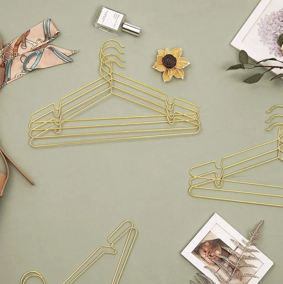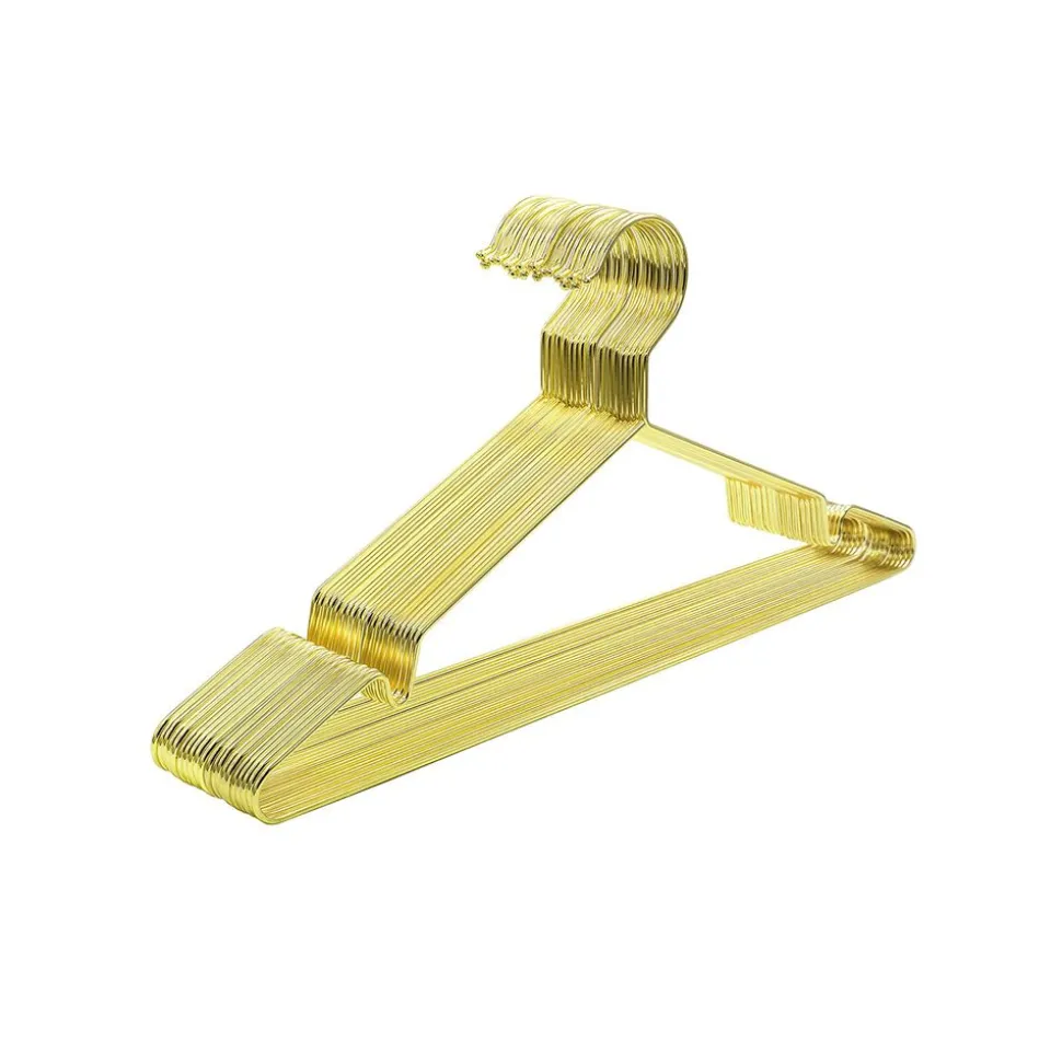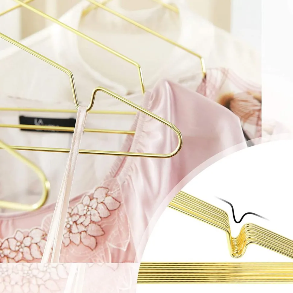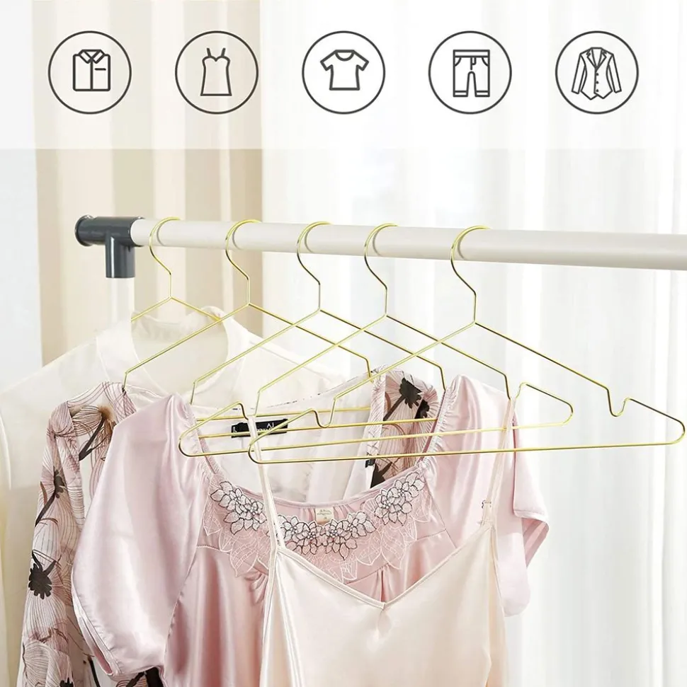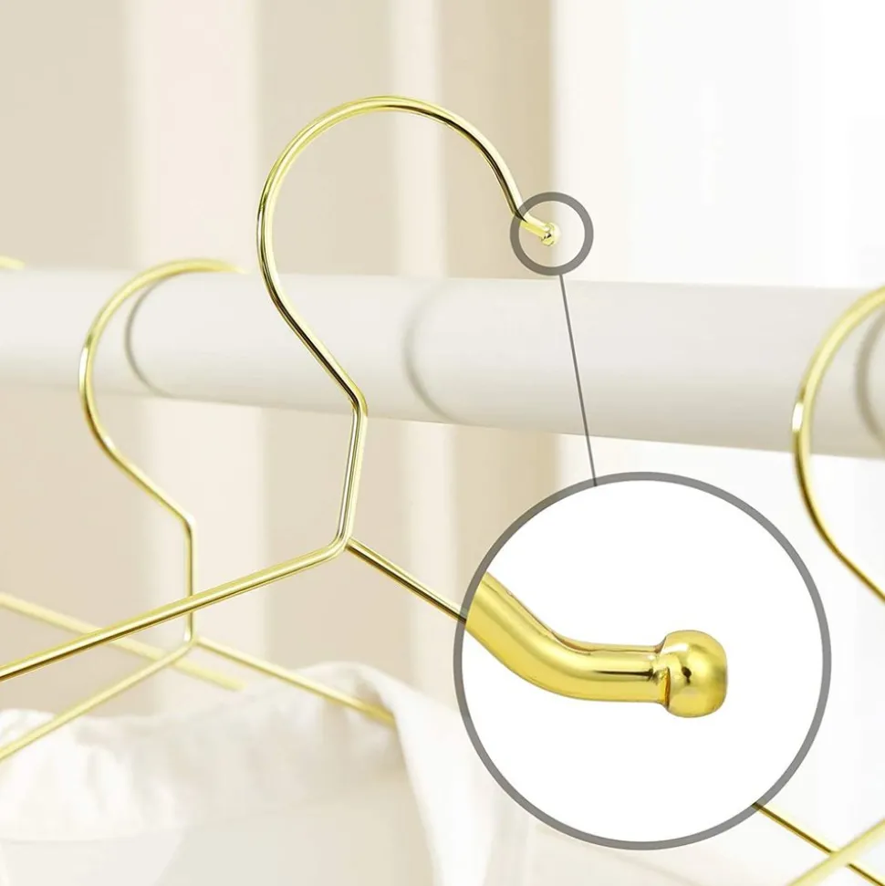 CINTRES SIMPLES ET STYLÉS : La finition de es cintres est élégante, chic et résistante. Sa tonalité dorée ajoute une touche d’éclat dans votre armoire, votre dressing et votre buanderie