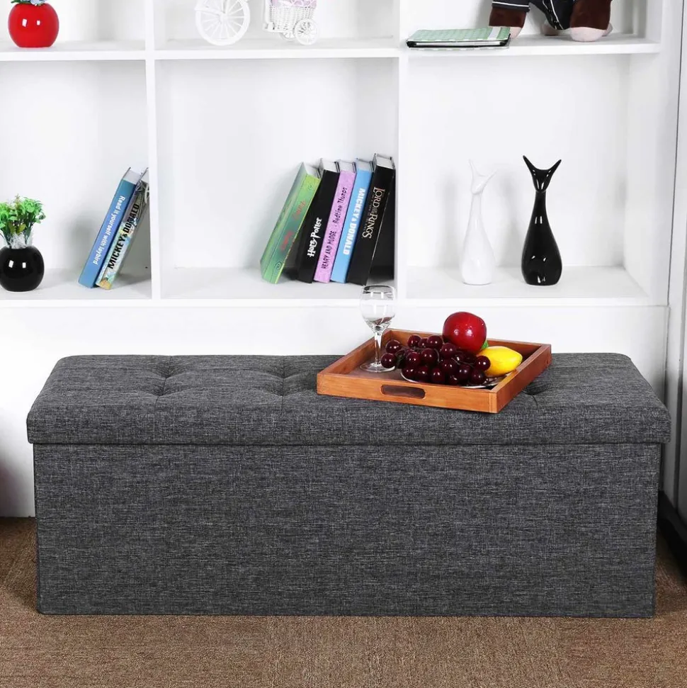 Utilisation pratique – Cette banquette de rangement est pliable et prend de petit d’espace. Avec ce coffre de rangement, Vous pourrez y ranger très facilement magazines, jeux, albums, DVD et faire de la place dans votre pièce