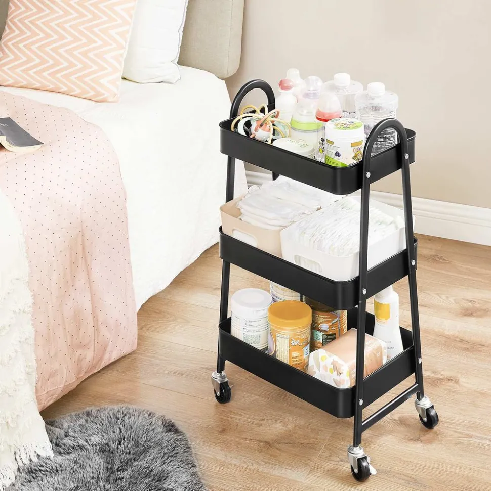 Chariot fiable : Il a de la force ! Grâce aux 3 paniers en fil métallique et aux barres en acier, la capacité de charge de chaque niveau est de 10 kg. Il vous accompagnera pour des années à venir