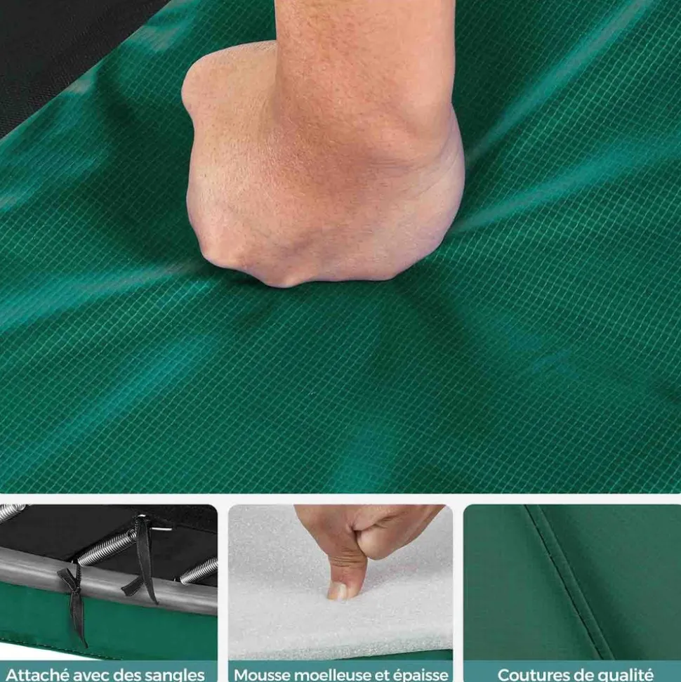 Protection des bords : Avec une largeur 300 mm et une épaisseur de 15 mm, ce coussin de protection réduit les chocs sur les ressorts tout en vous offrant une protection bord à bord pour une expérience de saut plus sûre. Allez, amusez-vous !