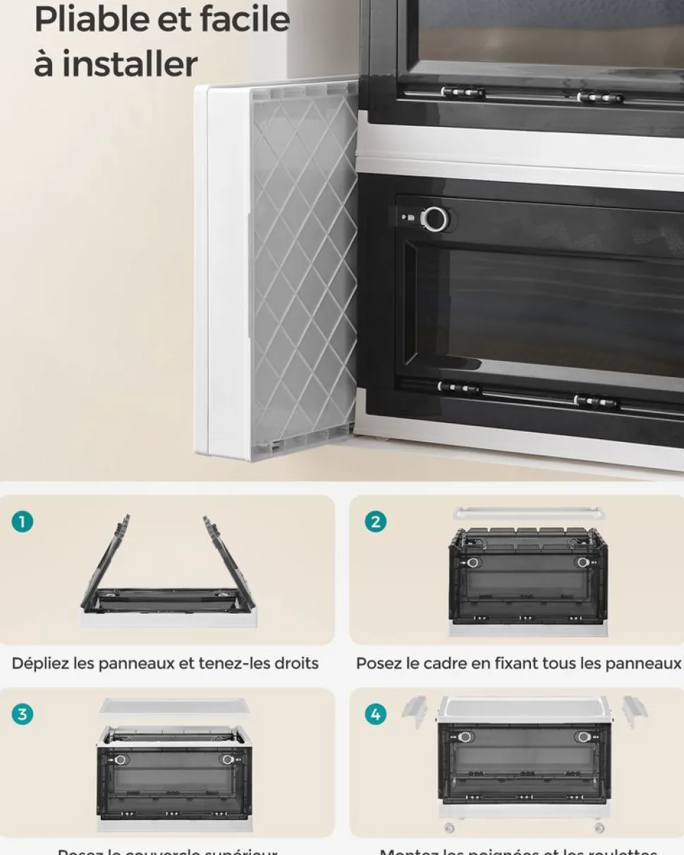 SOUS LE LIT OU AU-DESSUS DU PLACARD ? Avec des dimensions compactes et des poignées latérales, les boîtes peuvent être facilement posées n’importe où