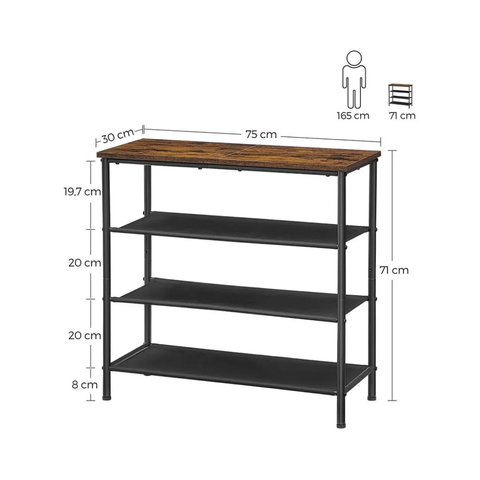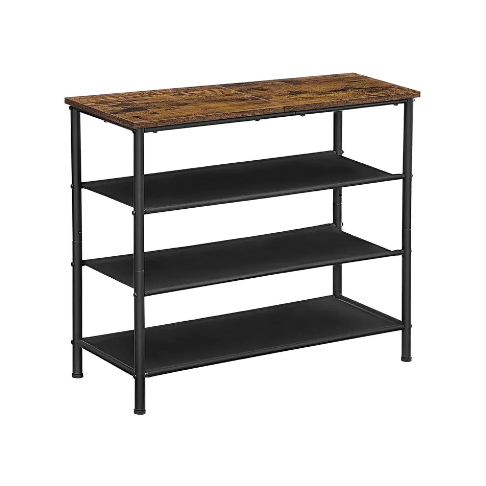 Plus l’espace de rangement est grand, mieux c’est ! La surface en panneau d’aggloméré est prévue pour vos sacs, des plantes et des décorations. Les 3 étagères en tissu polyester offrent beaucoup d’espace pour vos chaussures