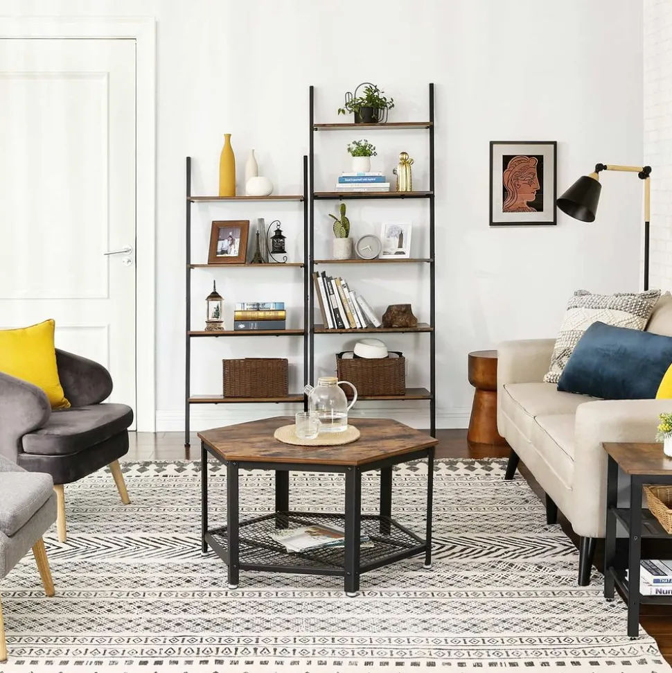 Moitié indus, moitié rustique : Les panneaux marron rustique se combinent à du noir et à une structure en X pour une ambiance industrielle relevée par une touche campagnarde. Ce meuble va faire un carton dans votre salon !
