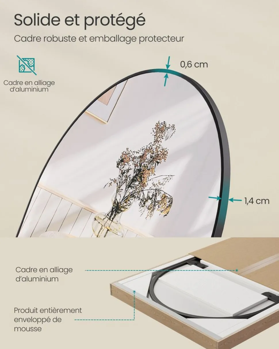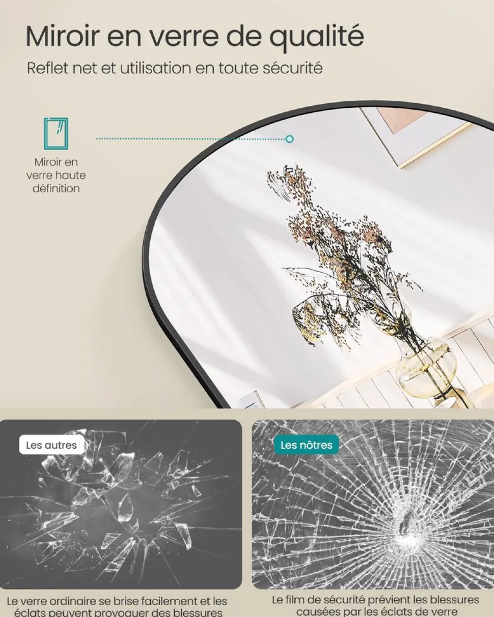 Finition chromée – Fabriqué en acier inoxydable, laiton et surface chromée, le miroir est robuste, élégant et résistant à la corrosion; les joints soudés assurent la sécurité; les bords du miroir et du socle mural sont arrondis