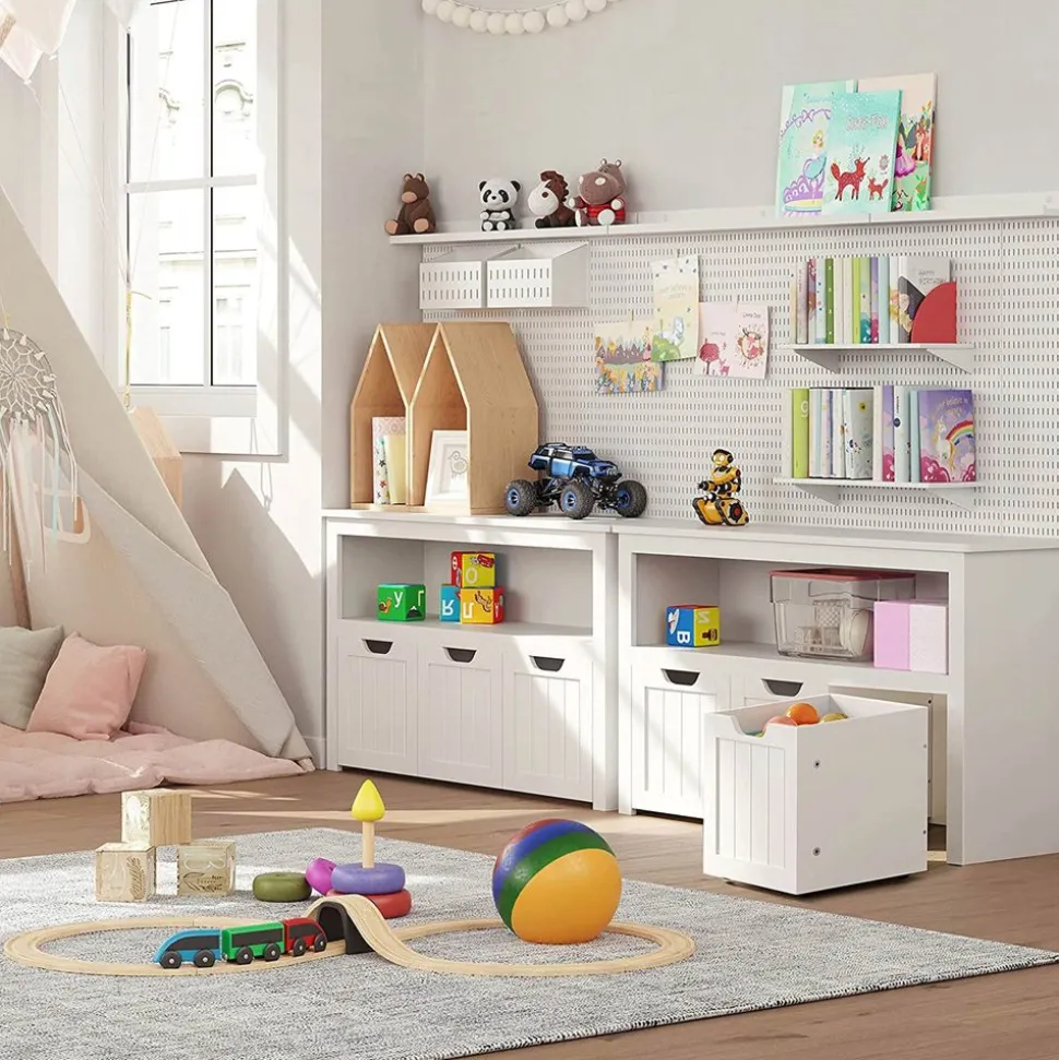 VESTE, SACS ET CINTRES : Des crochets, des tringles et des étagères vous offrent de l’espace pour vos vêtements, foulards, sacs, etc. Les crochets en bas sont prévus pour vos enfants, ils accrochent facilement leur vestes et leur cartables
