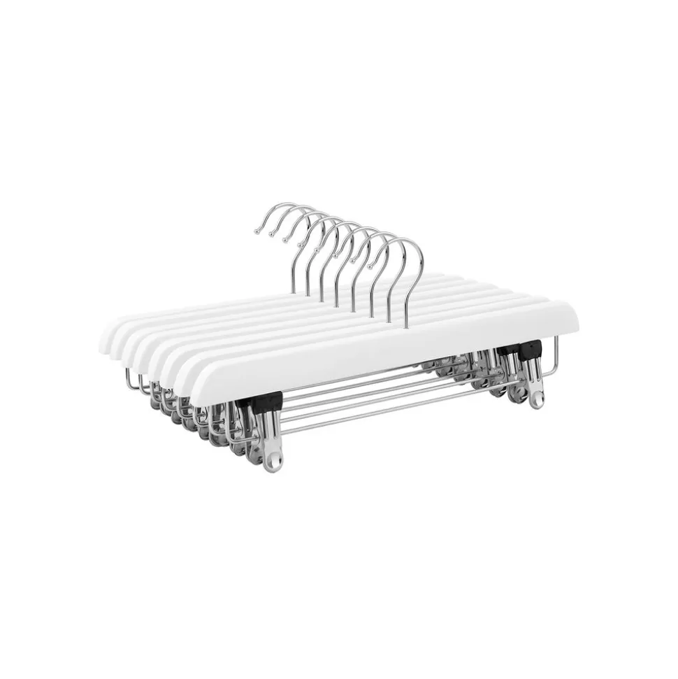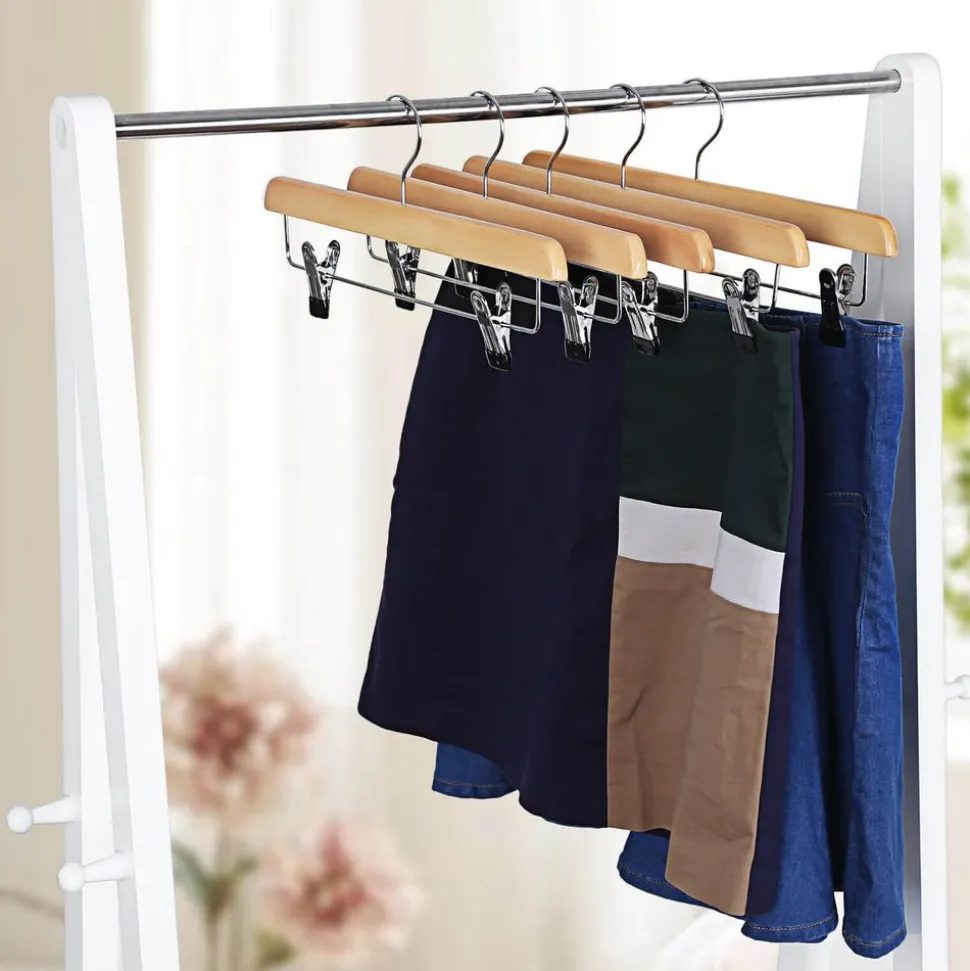 Etes-vous encore ennuyé pour le problème de rangement de vos patalons et vos jupes toujours en désordre? Cherchez – vous encore des cintres pour les ranger? Conçus spécialement pour ranger les jupes et les pantalons, les cintres-pinces en bois naturel de Songmics sont résistants et écologiques. Les bouts des pinces sont revêtus en PVC, ce qui augmente les frottements entre les vêtements et les pinces, afin d’empêcher la chute des vêtements et de protéger les vêtements contre la déformation et les plis. Les crochets chromés pivotent à 360°, ce qui facilite la pendaison des vêtements. Il est un grand plaisir de vous offrir un produit pratique et solide, ce produit facilitera sûrement votre vie.