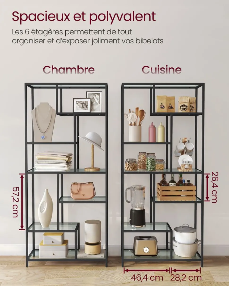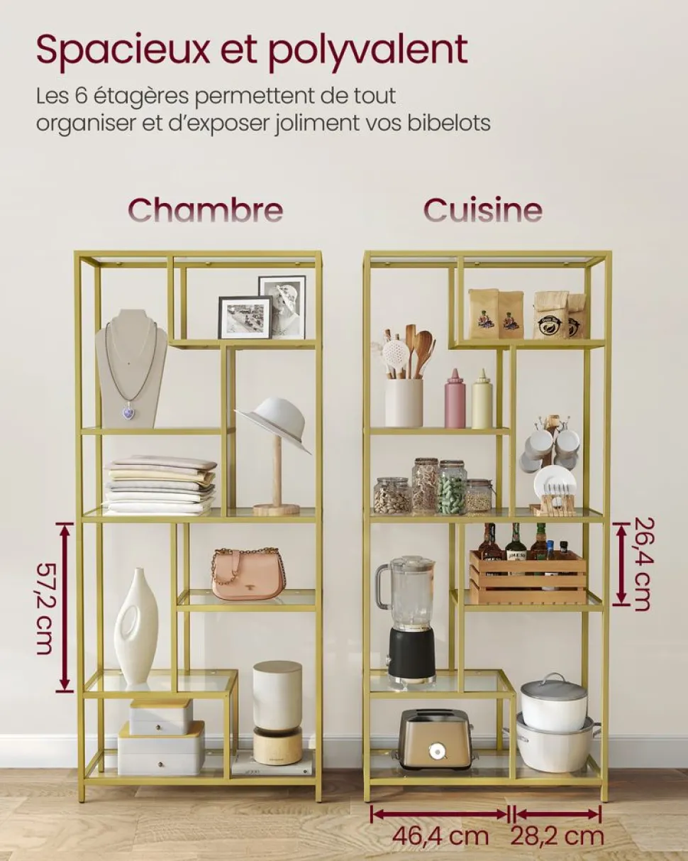 Diverses utilisations, plus de possibilités : Cette étagère peut être utilisée dans votre bureau pour ranger des livres et des magazines ; dans votre salon pour exposer des décoration ; dans vôtre cuisine pour ranger des pots d’épices et des ustensiles