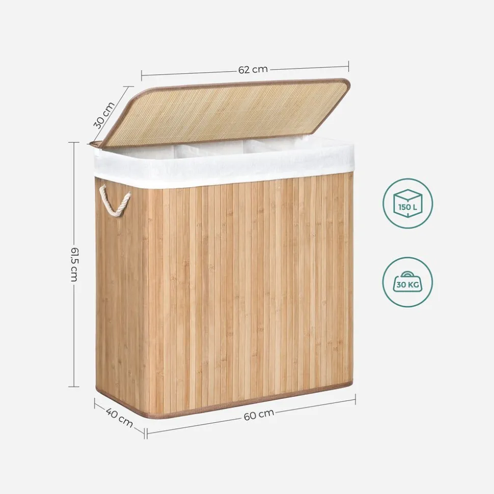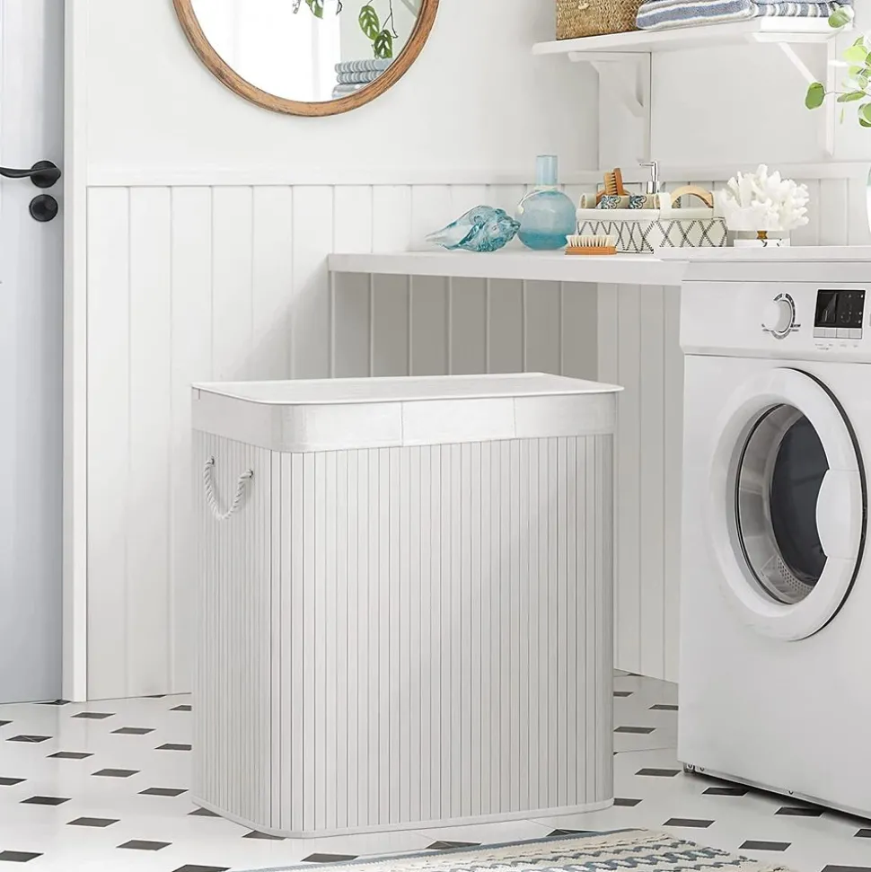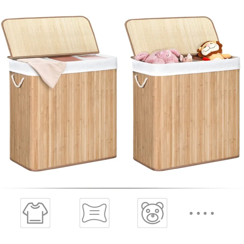 Une aide polyvalente au quotidien : Ce panier à linge avec 2 compartiments et 2 étagères s’intègre bien dans votre buanderie, votre salle de bain ou votre chambre. Il vous aide à cacher le linge sale et à garder vos affaires à portée de main