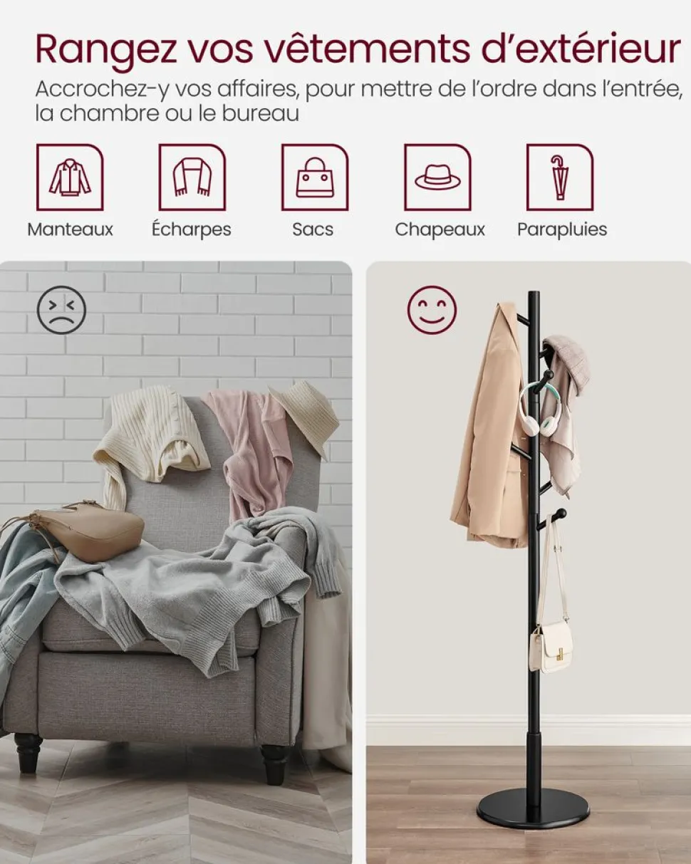 【SOUTIENT DE TOUTES SES FORCES】Les tubes d’acier renforcés forment un cadre solide qui supporte jusqu’à 300 kg. Les pieds réglables assurent une bonne stabilité même sur un sol légèrement irrégulier. Vous pouvez compter sur leur soutien !