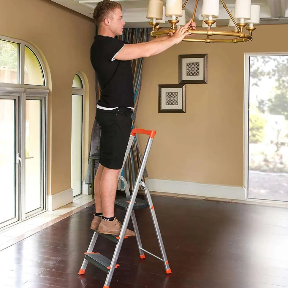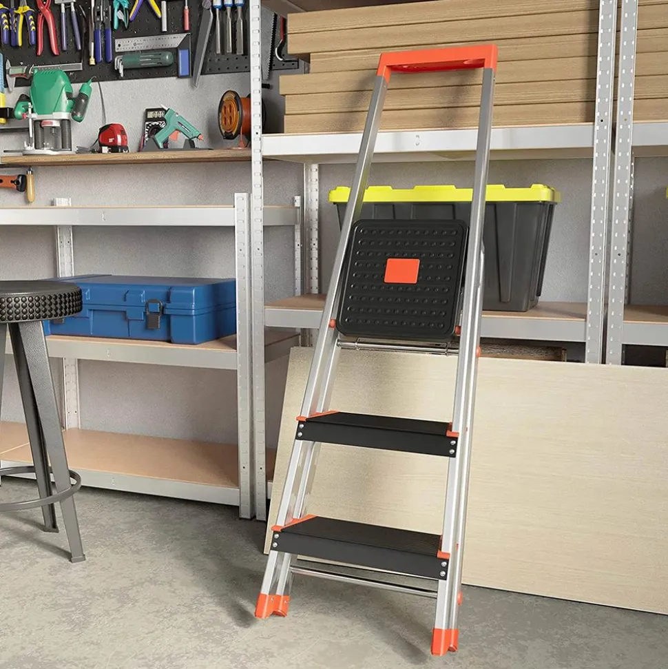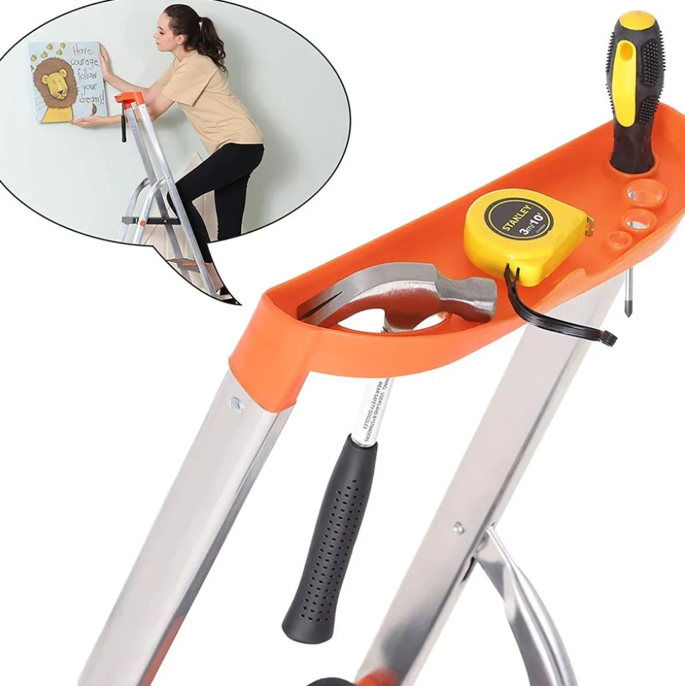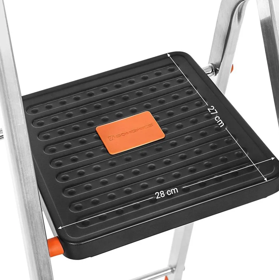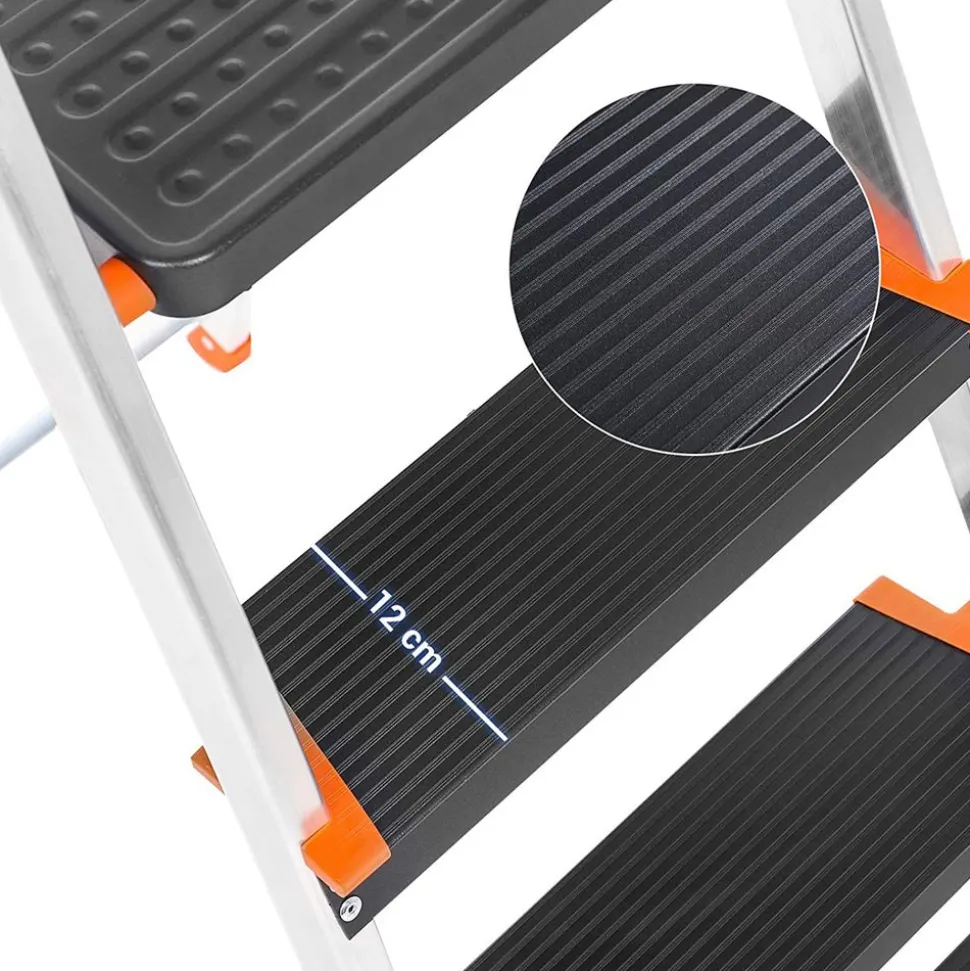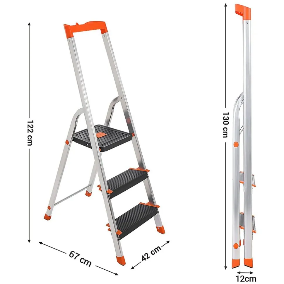 Usage pratique – Escabeau à 3 marches double face, la hauteur de l’escabeau déplié est de 62 cm