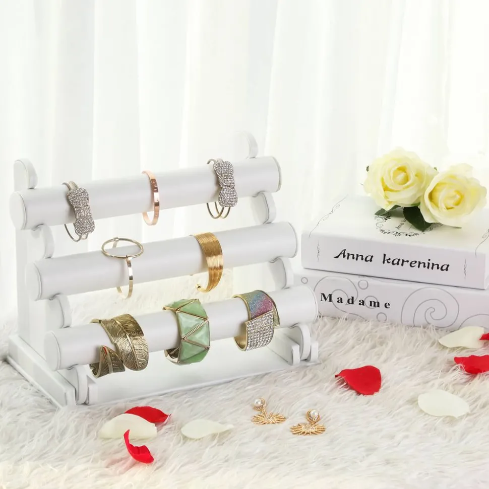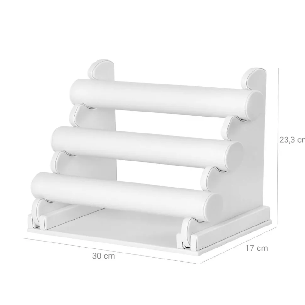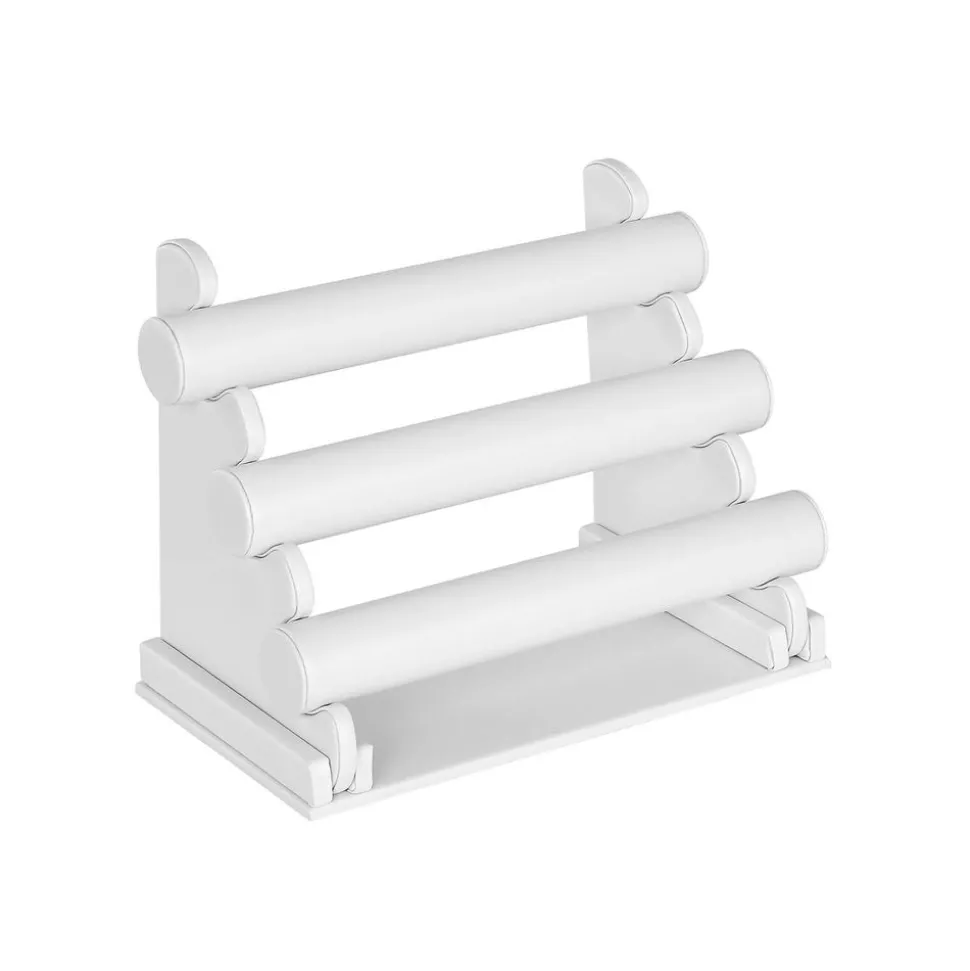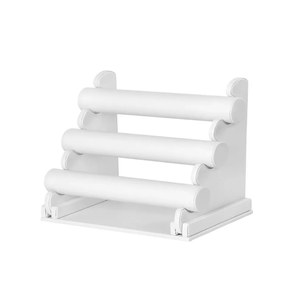 Présentoir de bracelets 3 rangs; Démontable; Vos bijoux seront plus beaux grâce au PU Blanc
