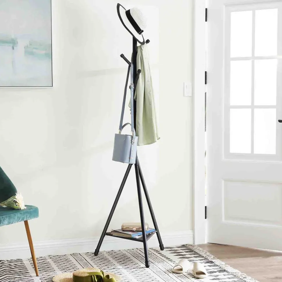 Ordre et sérénité : Le désordre vient trop souvent troubler vos moments de relaxation à la maison, l’endroit où l’on est censé pouvoir se détendre sans perturbation ? Remédiez à ce problème dès maintenant en optant pour ce portemanteau SONGMICS. Muni de 6 crochets et d’1 étagère, il vous permet enfin de ranger vos vêtements, vos chapeaux, vos sacs et vos parapluies qui n’avaient jusqu’à présent aucune place attitrée.