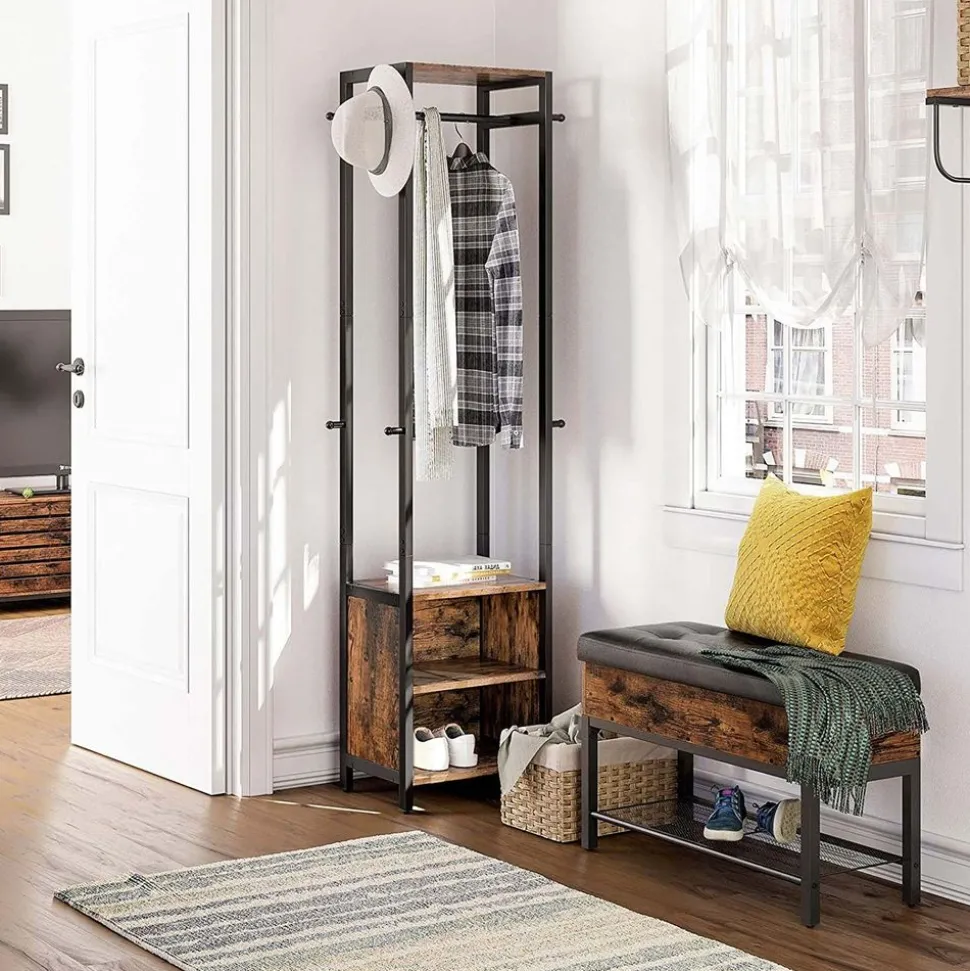 QUEL EST VOTRE MODE DE VIE ? Vous aimez le style industriel branché, vous adorez les accents vintage ou vous êtes fan des mélanges de styles sophistiqués ? En plein dans le mille ! Dans les 3 cas, ce charmant portemanteau brun rustique avec un cadre en acier noir mat s’adapte parfaitement à vos goûts