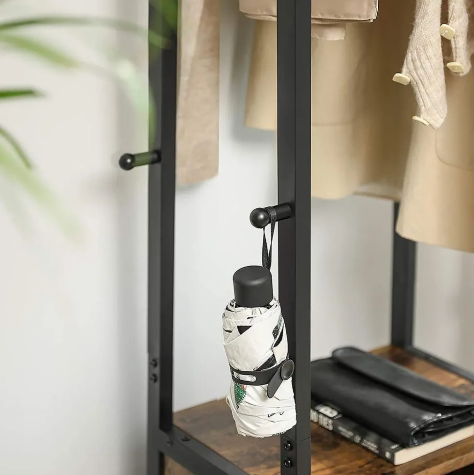 TOUT SUR LE CROCHET : Des crochets (charge 3 kg) sont répartis sur les poteaux en acier robuste. Vous pouvez parfaitement accrocher des vestes sur les crochets supérieurs et des sacs sur les crochets inférieurs