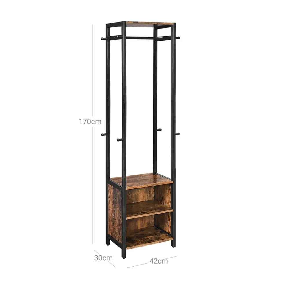 CE QUE VOUS OBTENEZ : Un portemanteau rustique avec 8 patères, 1 tringle à vêtements et 2 compartiments ouverts pour gagner de la place. Ce meuble fait partie de la Collection DAINTREE !