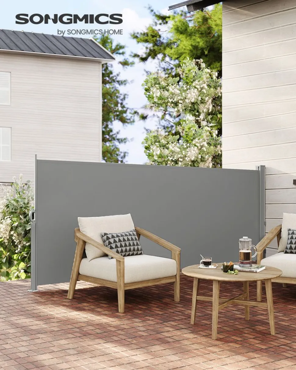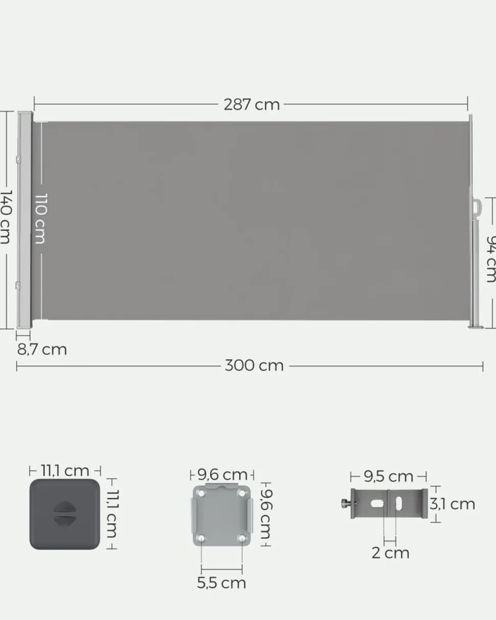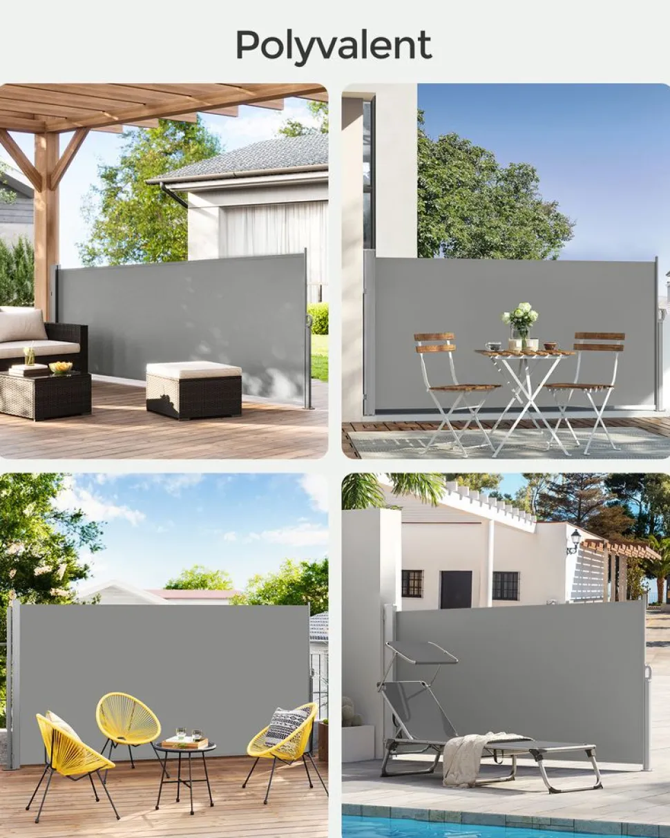 - Est-il possible d’enlever un auvent double-face après l’installation sur le sol dur ? C’est réalisable avec ce socle SONGMICS. Il suffit de glisser la cassette du store. Le store latéral est prêt à vous protéger des rayons forts du soleil et des regards indiscrets des voisins.