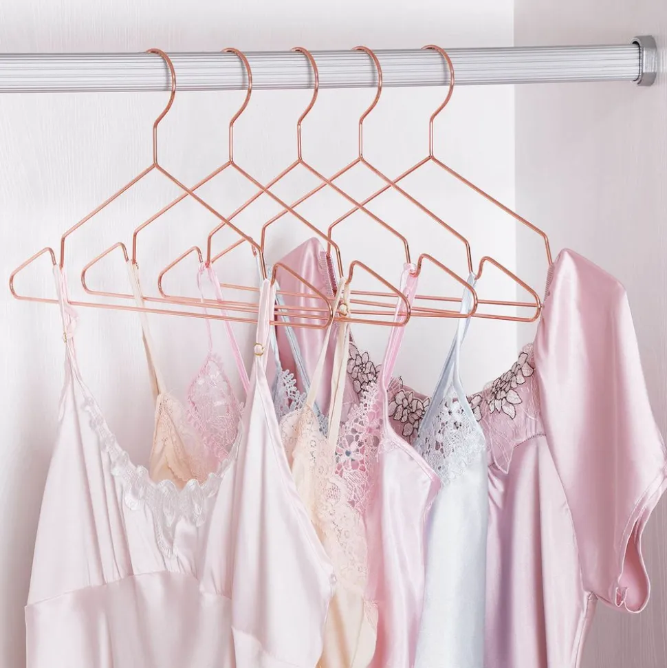 Avec un style scandinave et une couleur cuivre rosé romantique, ce cintre fera votre rangement un moment agréable.