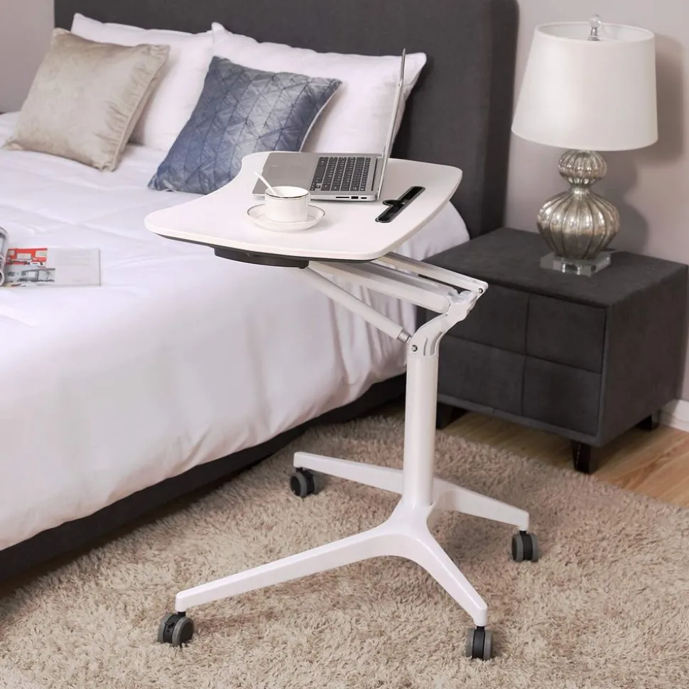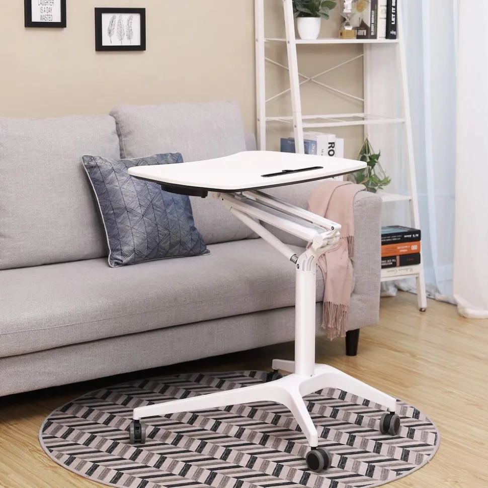Votre travail, ça roule : Ce bureau est équipé de 4 roulettes pivotantes à 360° dont 2 avec freins pour le déplacer et le stabiliser facilement. Vous voyez, c’est comme vous au travail, il sait très bien s’adapter à de nouveaux scénarios