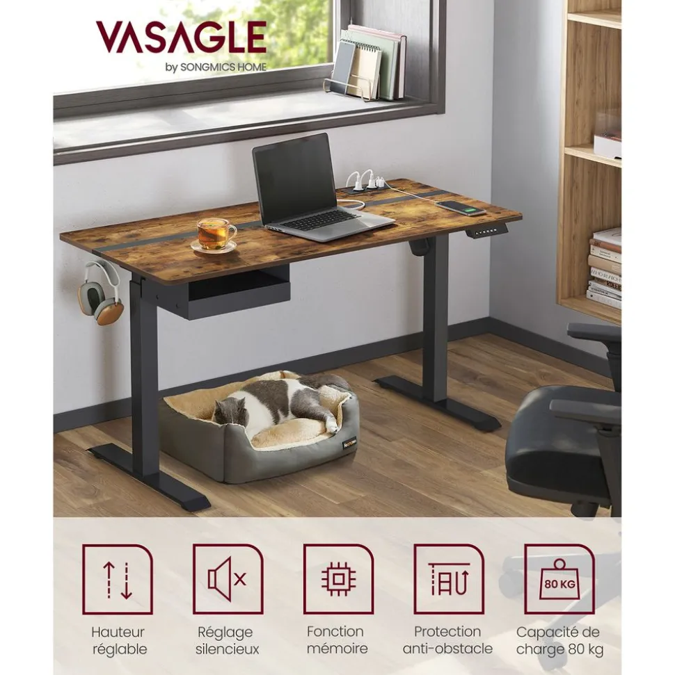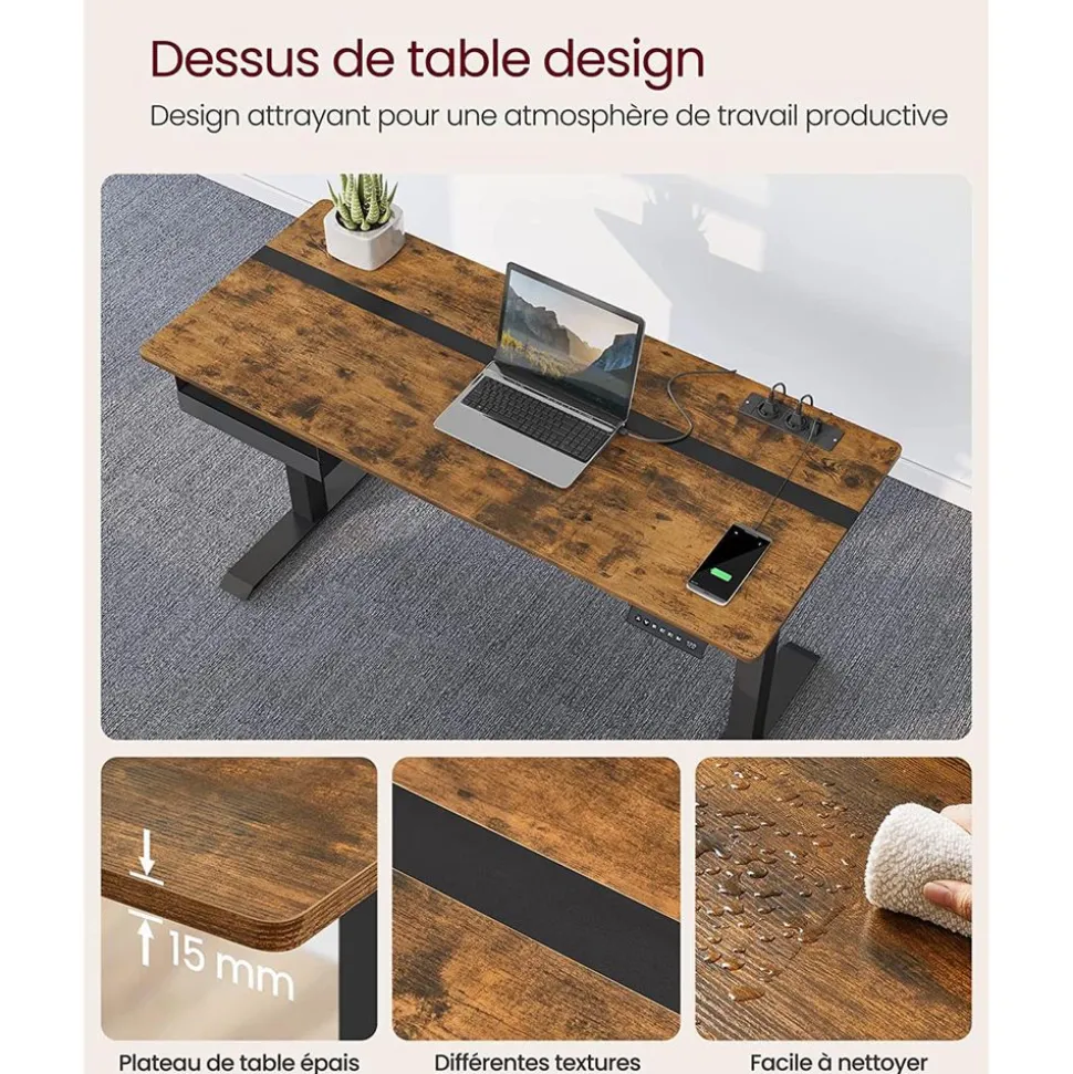 [4 mémoires et anti-obstacle] Vous pouvez régler la hauteur du bureau électrique entre 72 et 120 cm grâce au panneau de commande, il peut mémoriser 4 hauteurs. Ce bureau est équipé d’un système de protection contre les obstacles[Ordonné] Placez la pochette sur à droite ou à gauche pour vos livres et vos documents. Placez les 3 crochets sur l’autre côté pour accrocher vos sacs. Il y a 2 trous pour laisser passer les câbles. Un bureau bien rangé vous aide à vous concentrer[Look attrayant et plein de détails] Les couleurs jaune pastel et blanc pur ajoutent du style à ce support de bureau. Le sous-main beige de la table est fait d‘une texture rugueuse[Assemblage sans problème] Les pièces numérotées et les instructions illustrées rendent l’assemblage moins pénible. Voilà plus de temps à travailler[Stable et silencieux] Ce bureau électrique est doté d’un cadre en acier stable, il supporte jusqu’à 80 kg. Son un bruit de fonctionnement est inférieur à 50 dB