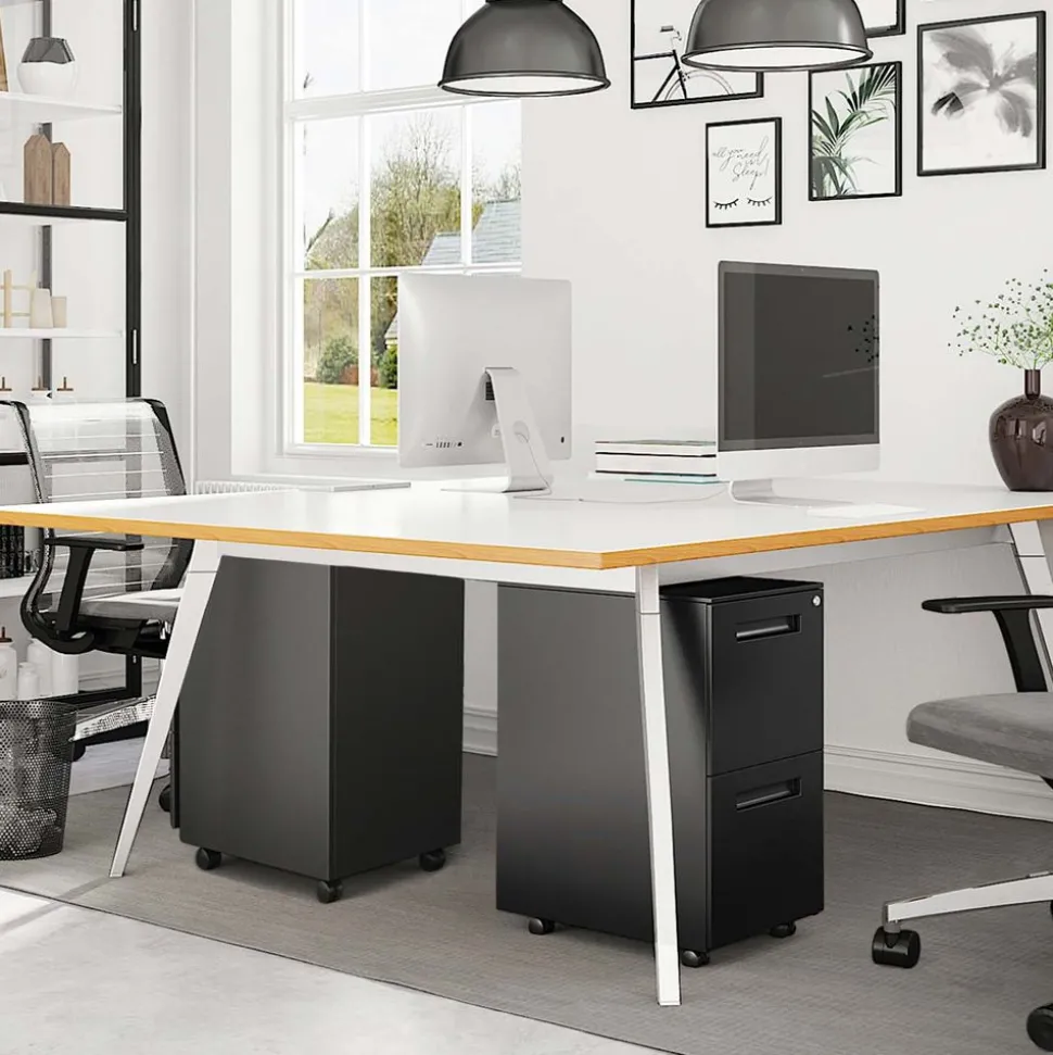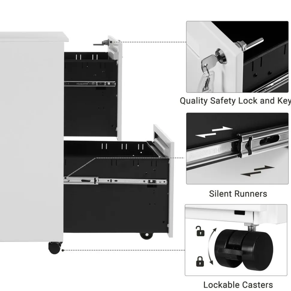 Ce que vous obtenez : Un caisson de bureau à 2 tiroirs avec serrure et roulettes pour bien organiser vos documents et ranger vos fournitures
