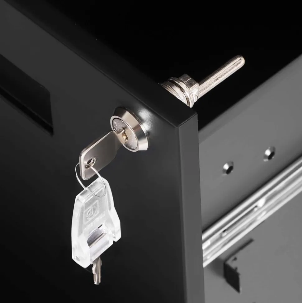 Vos secrets sont bien protégés : Le verrou pratique vous permet de verrouiller les 2 tiroirs simultanément. Avec lui, vous pouvez ranger vos papiers confidentiels sans problème. Ce caisson est parfait pour ceux qui travaillent dans la fonction publique