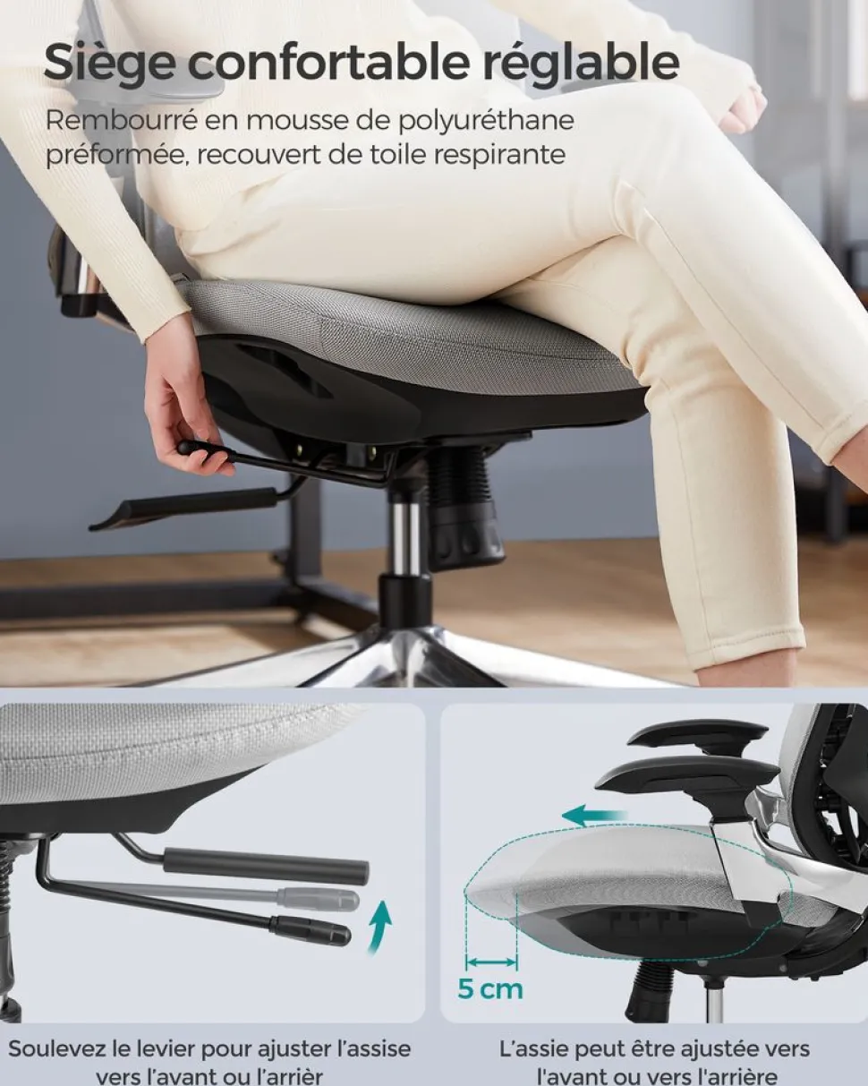 Best Sale SONGMICS Fauteuil ergonomique pivotant réglable rose
