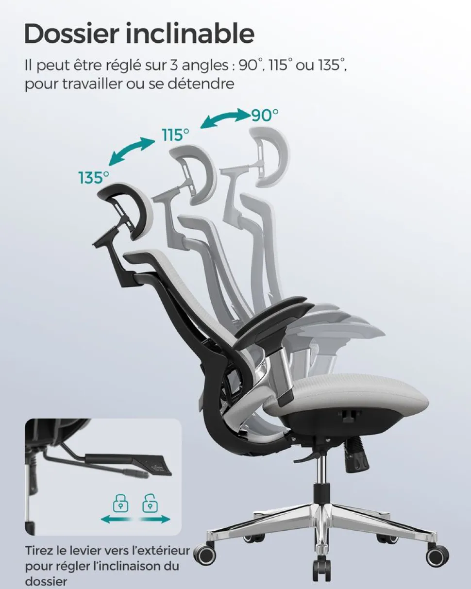 [Réglages multiples] Le dossier de ce fauteuil gaming est inclinable entre 90° et 135°, la hauteur de l’assise est réglable entre 50 et 60 cm. Vous pouvez utiliser le repose-pieds et le mécanisme à bascule à 20° pour vous reposer[Accoudoirs 3D] Les accoudoirs se règlent vers le haut, le bas, à gauche, à droite, en avant et en arrière pour soutenir vos bras . Ils vous soulagent de la fatigue et peuvent être baissés de façon très pratique pour glisser le fauteuil sous la table[Stable et fiable] Grâce à sa structure interne en acier, à son vérin à gaz de Classe 3 certifié SGS et à sa base en étoile robuste, cette chaise de gaming peut supporter jusqu’à 150 kg, assurant ainsi stabilité et sécurité[Stylé et rembourré] Inspiré des sièges de voitures de course, ce fauteuil rembourré est doté d’un dossier enveloppant, d’une surface en PU effet fibre de carbone et de coutures soignées, offrant ainsi un équilibre parfait entre esthétique et confort[Facile à monter] Les instructions sont simples et claires, et il est possible d’assembler cette chaise de gaming en seulement 30 minutes, c’est toujours ça de gagner sur votre temps de jeu