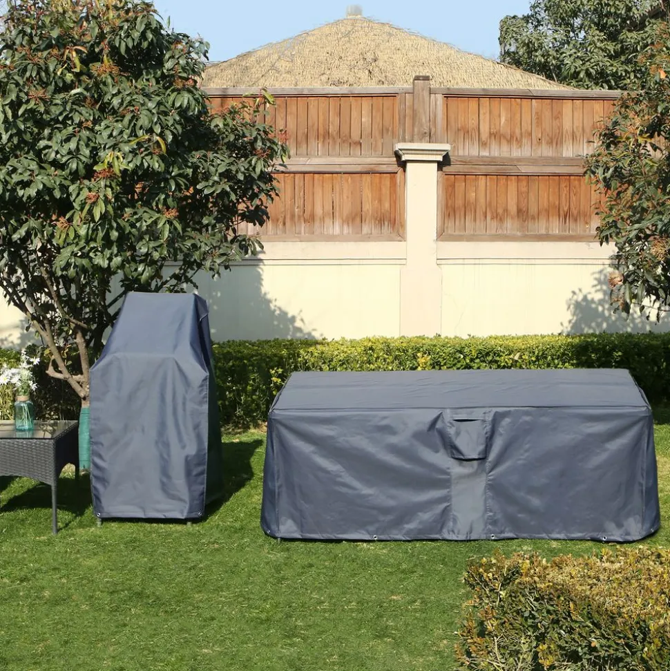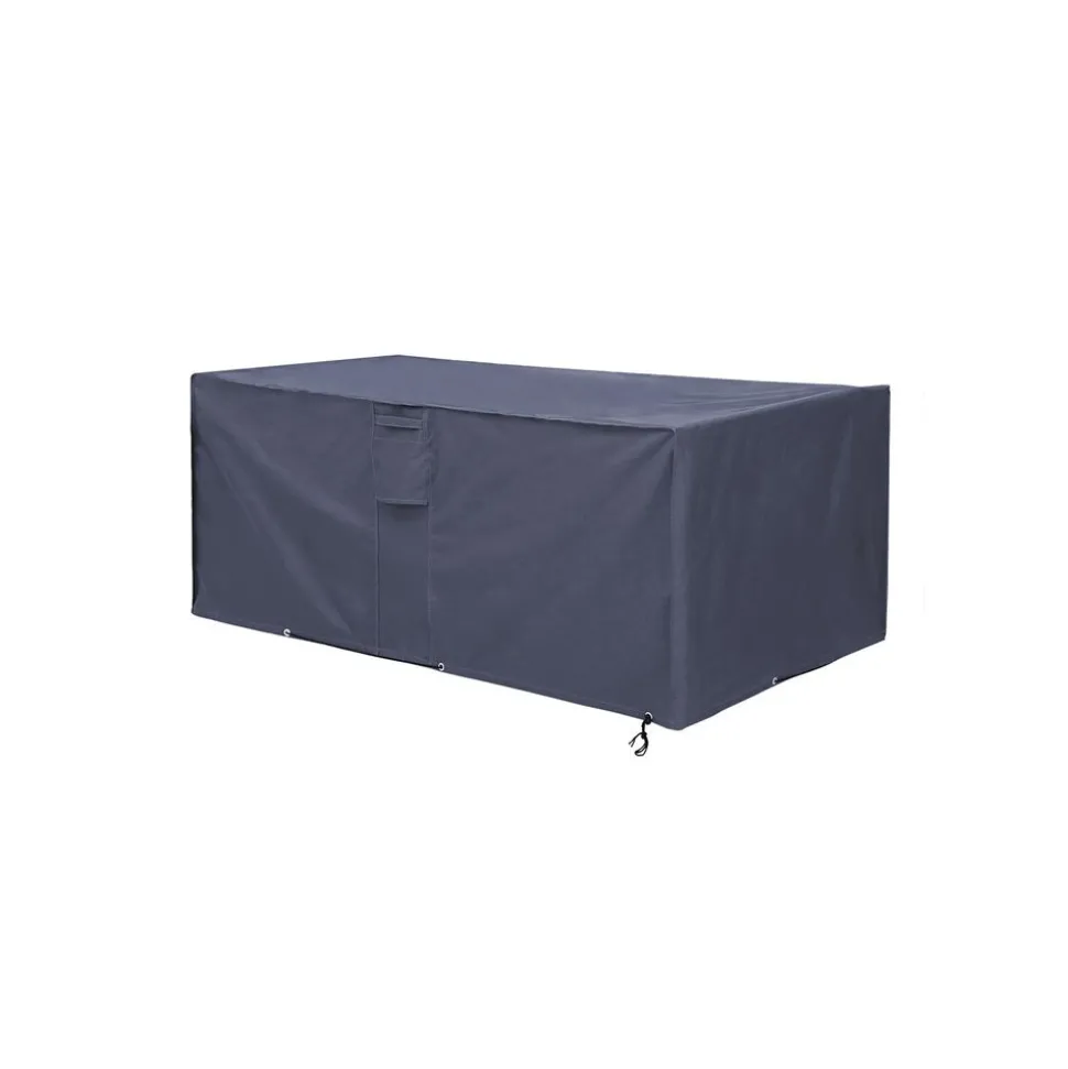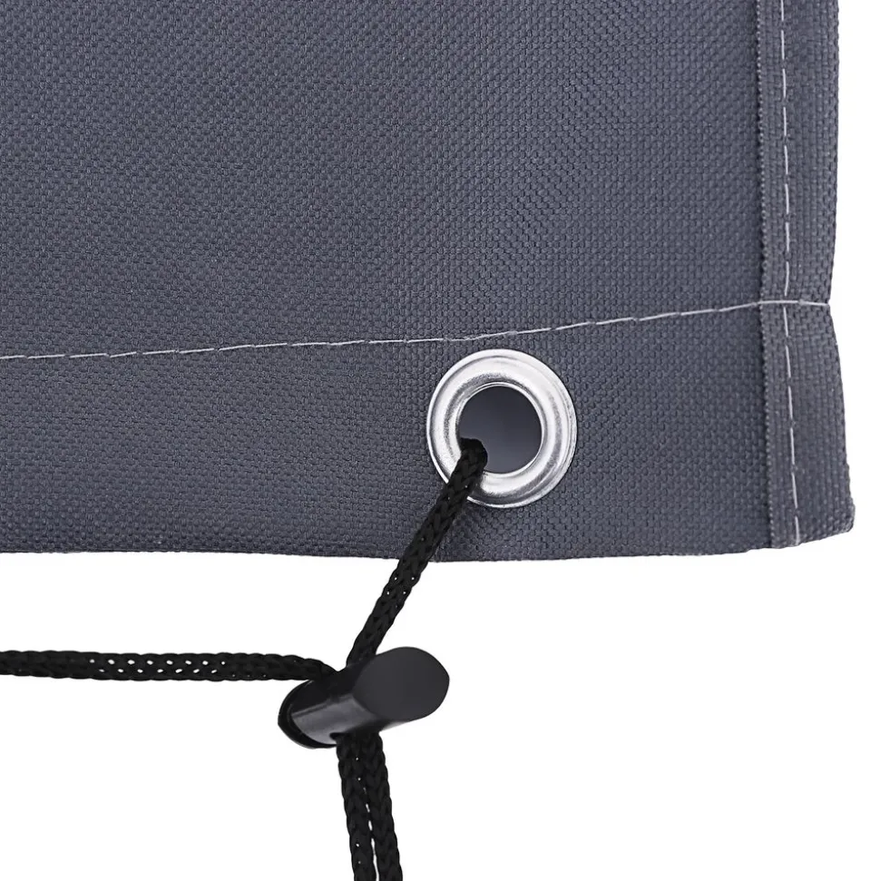 Les poignées sur la bâche facilitent la mise en place sur les meubles de jardin ainsi que le retrait.