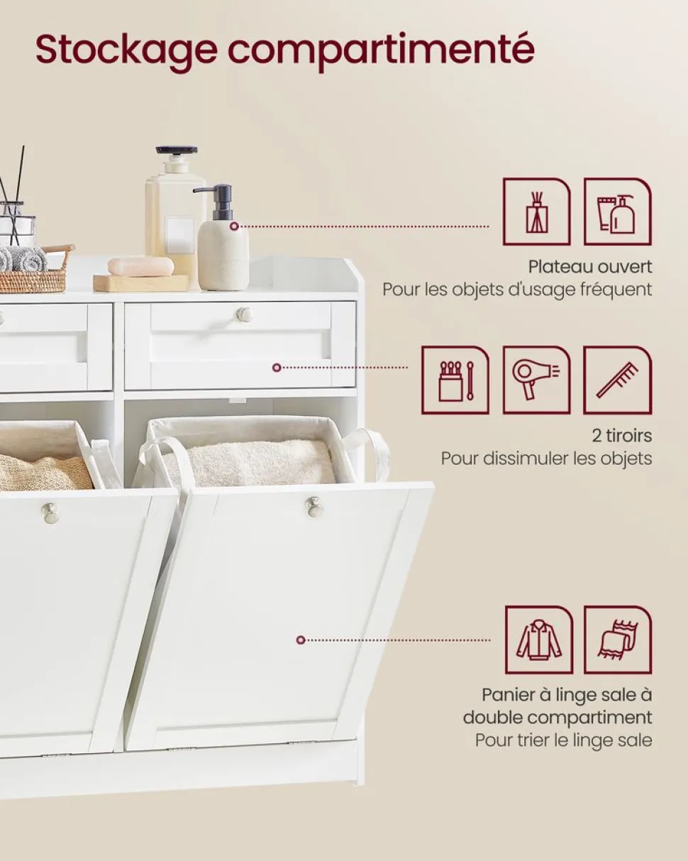 SKU: SKUBBC770W01 Categories: Entrée, Meubles, Placards, Placards, Salle De Bain Tags: Blanc Nuage, Gris Tourterelle, SONGMICS Brand: SONGMICS