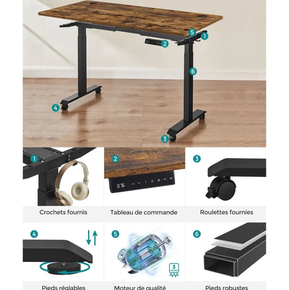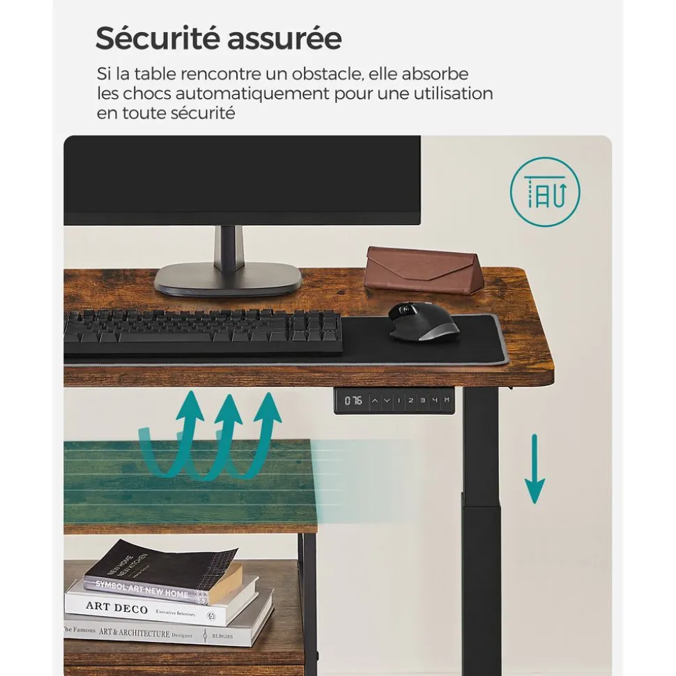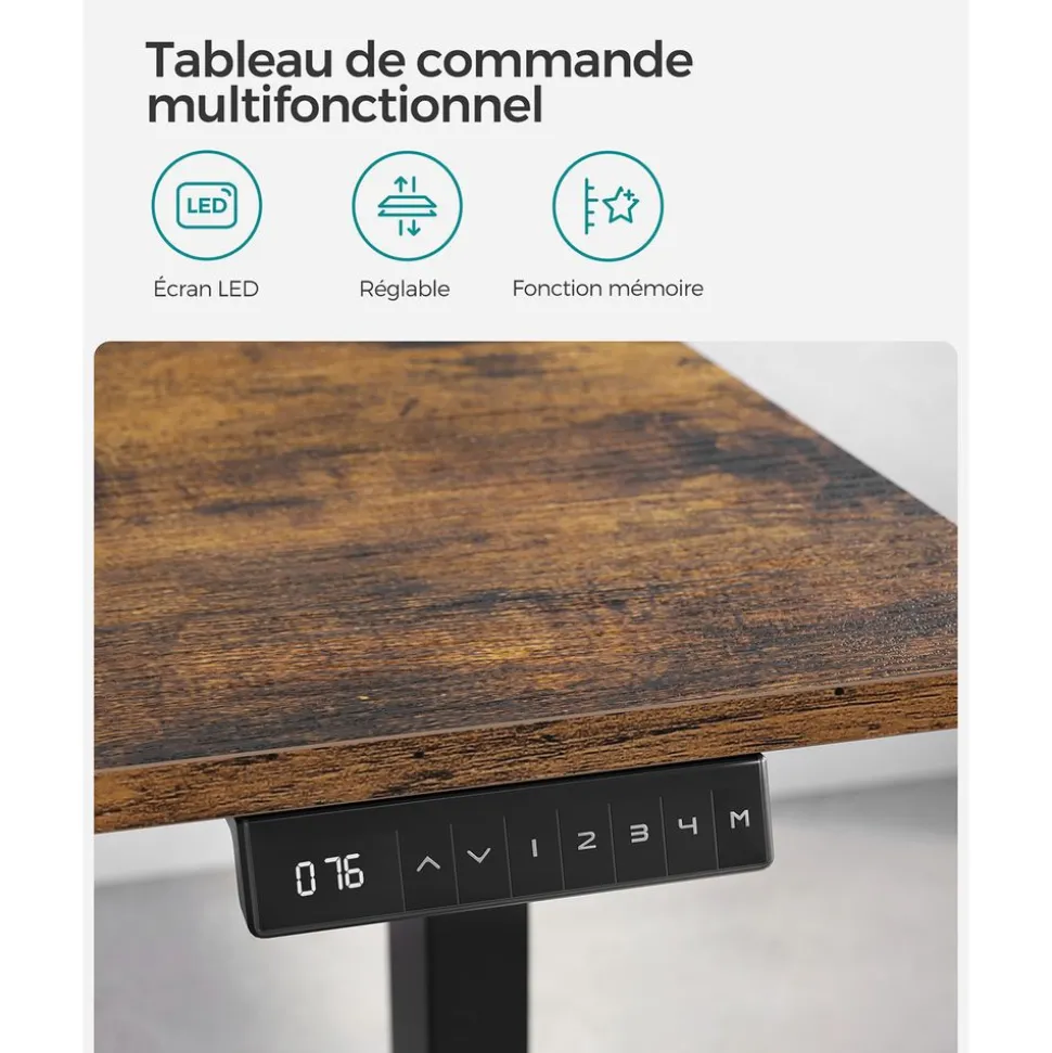 Excellente stabilité : Le cadre en acier est particulièrement robuste, on peut y charger jusqu’à 50 kg. Comme ça, même si vous tapez sur le clavier énergiquement ou si vous mettez des livres lourds sur ce bureau, il ne vacille pas