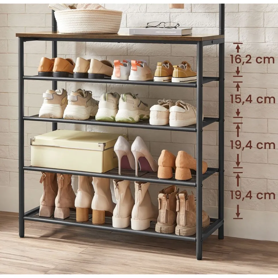 Bienvenues à plus de chaussures : Les 4 étagères grillagées de différentes hauteurs vous permettent de trier vos différents types de chaussures. Les étagères en maille fine leur offrent un support stable, même pour les chaussures à talon fin