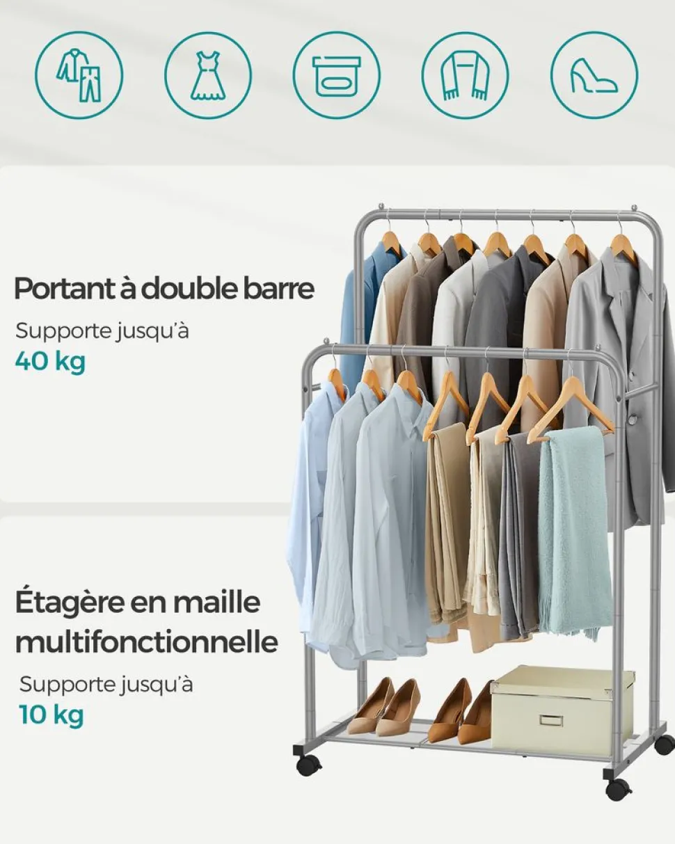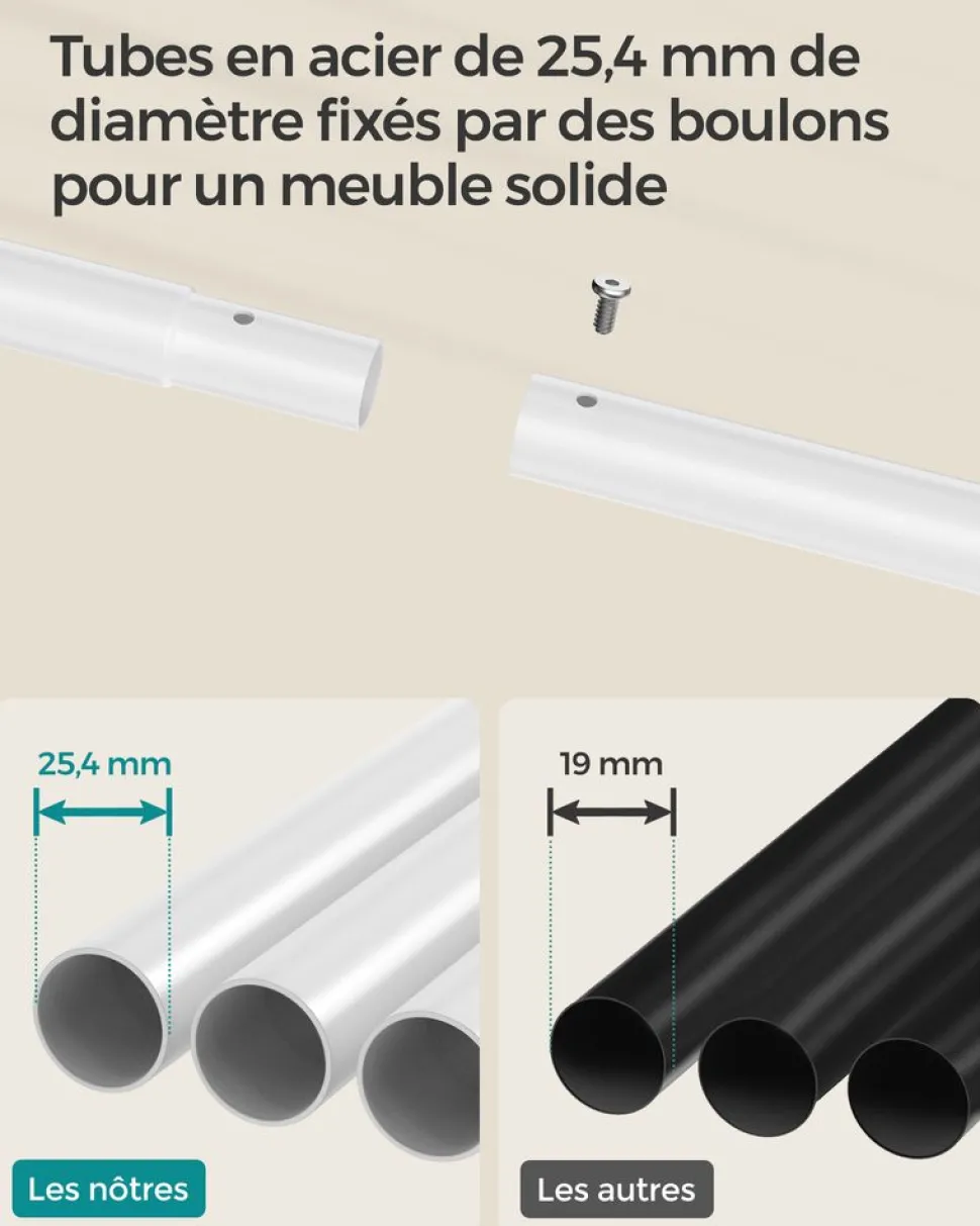 SKU: SKULLS020W01 Categories: Chambre, Entrée, Meubles, Penderies & Portants, Portants À Vêtements Tags: Blanc Perle + Marron Camel, Noir D'encre + Gris Ardoise, SONGMICS Brand: SONGMICS