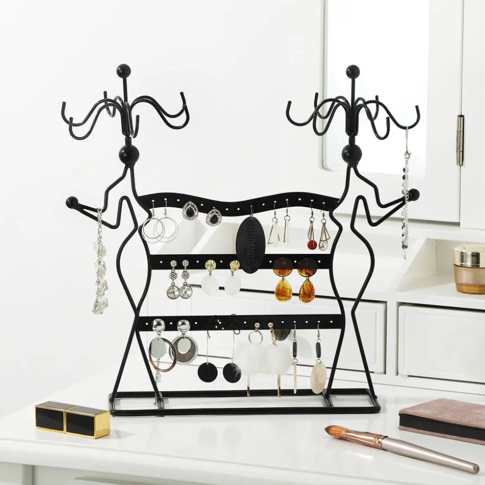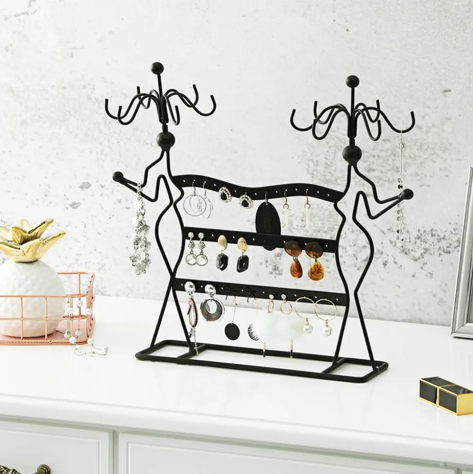 Forme esthétique – Avec la structure en fer et la forme des jeunes filles, ce présentoir de bijoux noir est élégant et délicat
