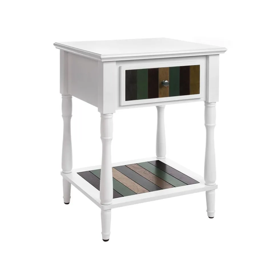 Les planches uniques et multi-colores de cette table d’appoint, associées à des pieds en bois massif robustes, font de cette table une pièce remarquable. Ces caractéristiques, combinées à la peinture à base d’eau, au montage facile, et au design unique, offrent une table de haute qualité. - Caractéristiques :