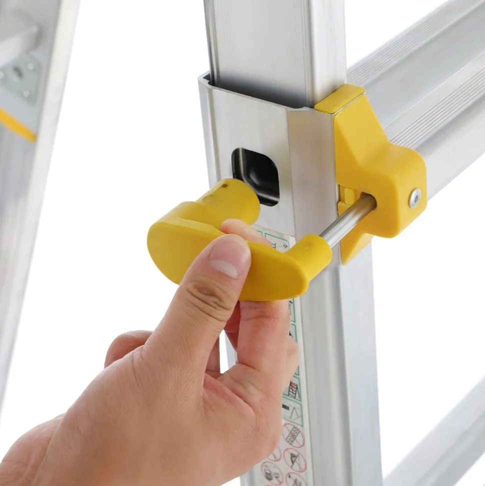 Fabriqué en aluminium de première qualité, cet escabeau est suffisamment rigide et résistant pour supporter un poids lourd jusqu’à 150 kg. Longévité assurée. Vous pouvez l’utiliser sans contrainte de sécurité.